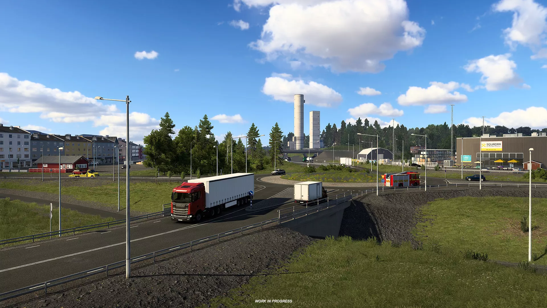 此外,卡车司机将能够将货物运送到当地的铁路终点站、建筑工地、回收场以及位于城镇周围的各种其他产业。我们希望《欧洲卡车模拟2》“北欧视野”DLC发布时,您会对访问这座城市感到兴奋。祝您运输愉快!