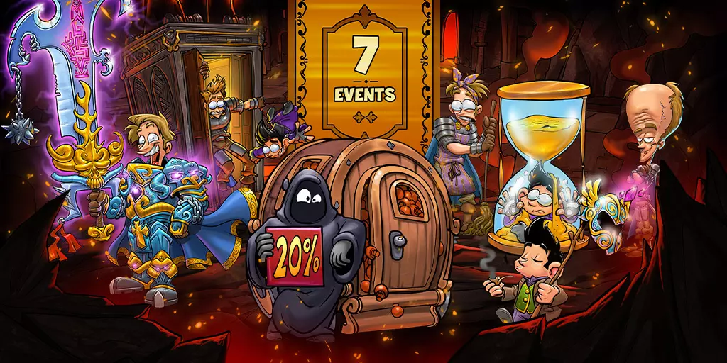 各位英雄们好! 希望大家在传说地下城玩得开心! 准备好迎接本周五至周日的以下周末活动:疯狂蘑菇丰收、传说地下城、辉煌黄金盛宴、幸运日、女巫之舞、奇妙堡垒庆典、神奇动物集结、锻造狂热节、厄运灵魂日以及整洁马桶时间。