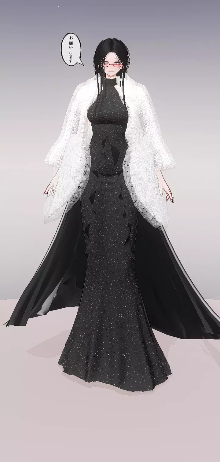 - 细节与氛围:角色的指甲涂着深色指甲油,手上戴着细巧的戒指,整体造型精致又不失干练。画面右上角的对话框里写着日文「お願いします」(意为“拜托了”),为这个优雅的形象增添了一丝故事感。