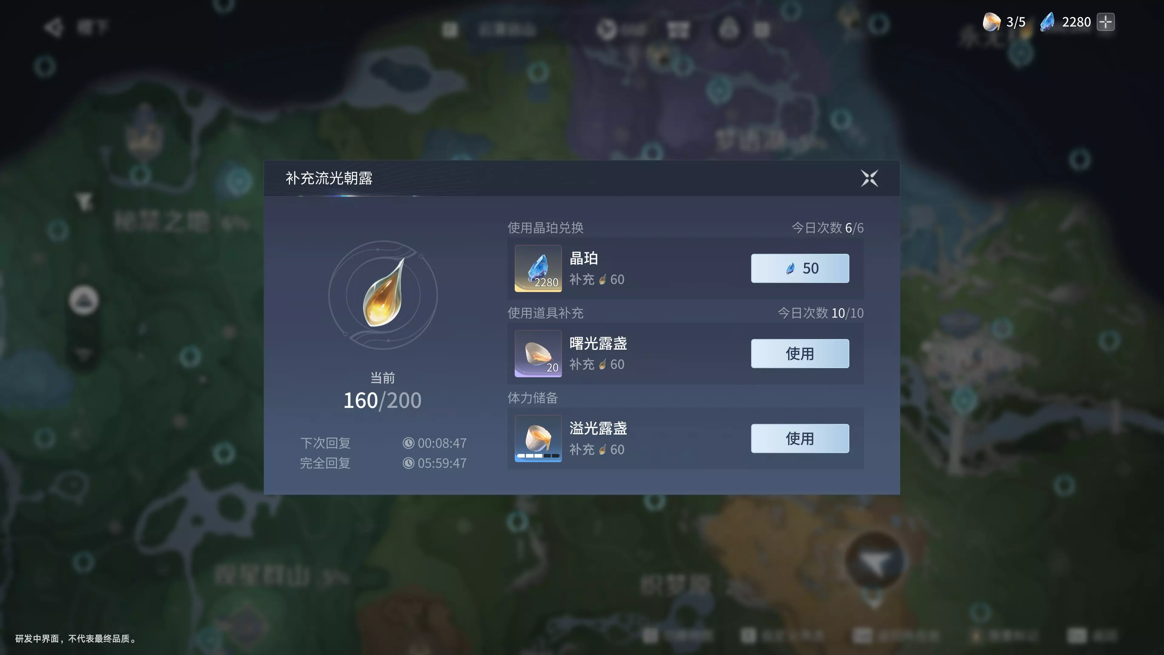 使用溢光露盏补充体力