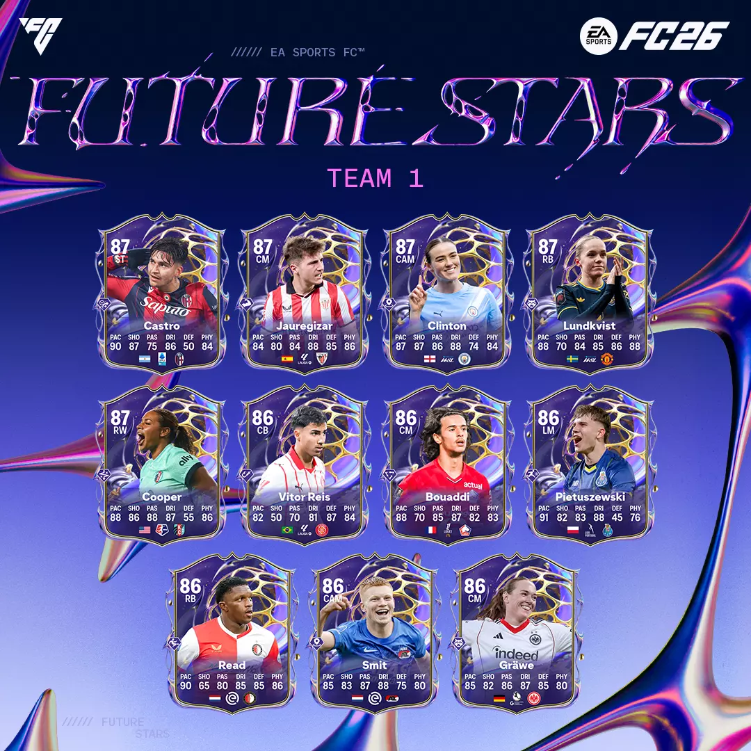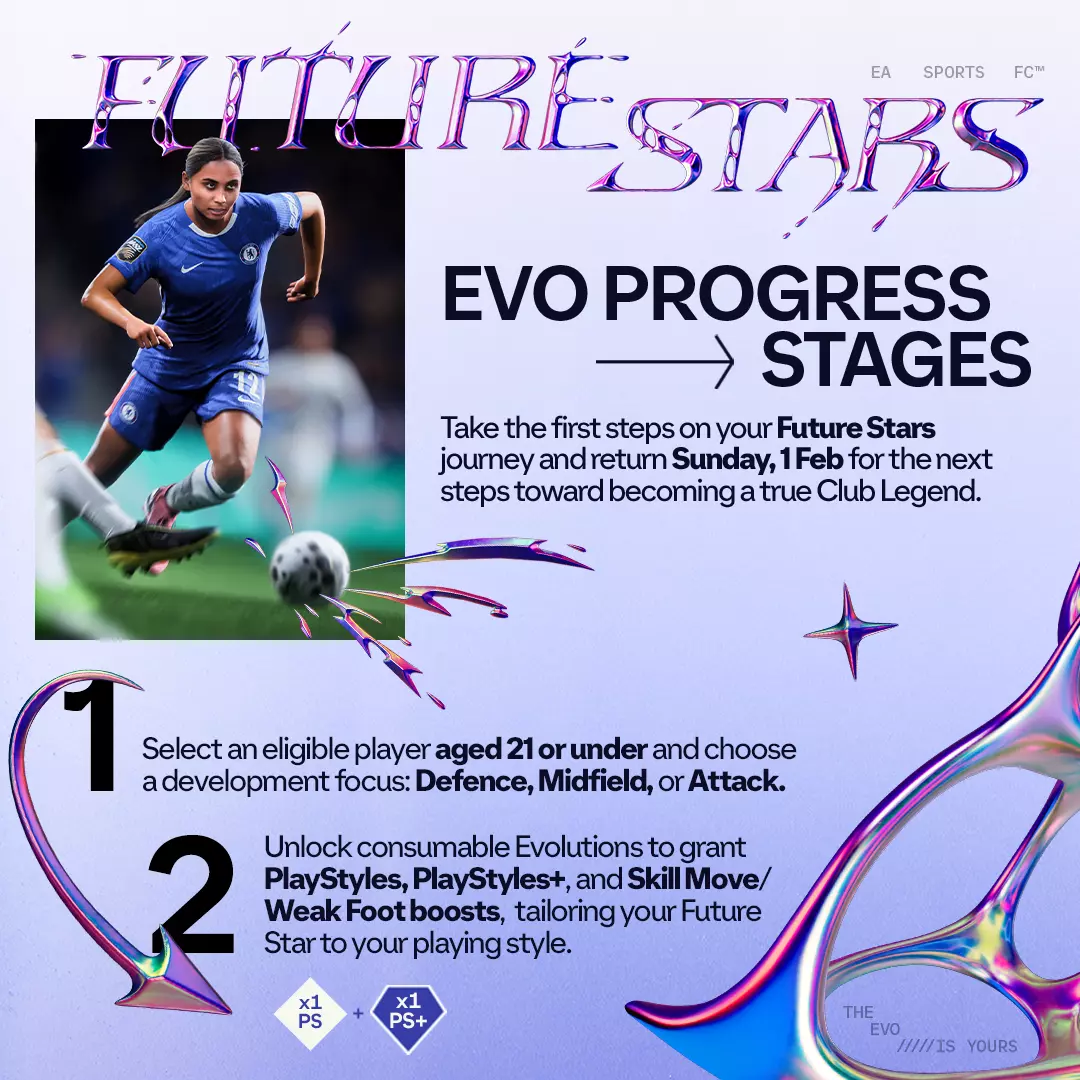 下一代全球球星即将登场。在EA SPORTS FC™ 26足球终极球队™中邂逅未来之星,聚焦表现出色的潜力年轻球员,同时推出主题进化系统,助你打造专属的未来之星青训球员。