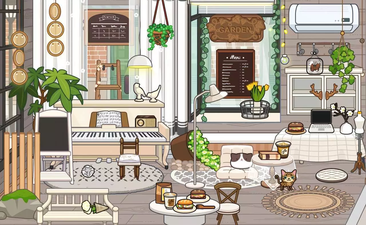 这是一组充满治愈感的森系小屋布置图,小屋内摆放钢琴、绿植,还有可爱猫咪相伴,搭配咖啡餐食,营造出惬意的治愈系空间,还搭配了文艺的文字,氛围感拉满。