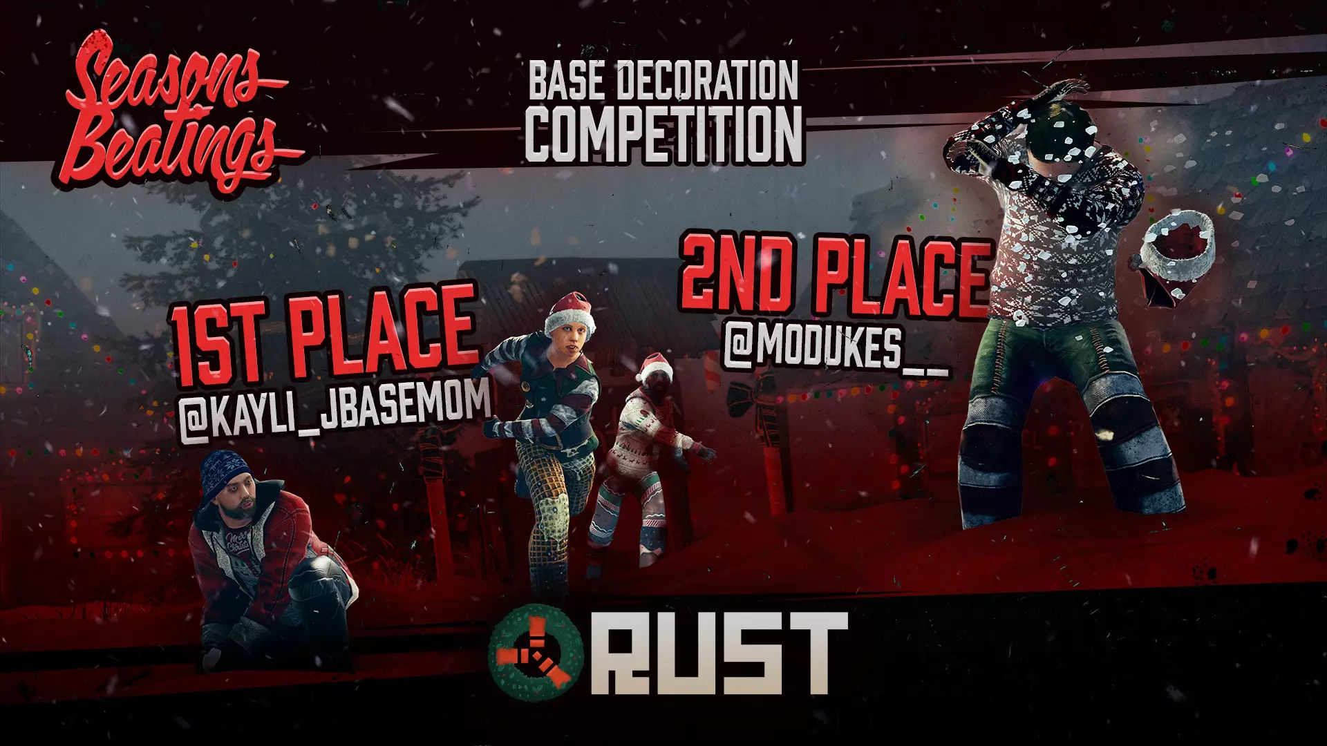 我们鼓励有额外时间且热爱游戏的玩家在此期间体验一下测试分支(beta)。您的反馈对我们非常宝贵,您可以使用游戏内置的F7报告系统提交反馈! 要访问测试分支,只需从您的Steam库中下载即可! 腐蚀圣诞节基地装饰大赛获奖者 圣诞节假期期间,我们举办了腐蚀圣诞节基地装饰大赛,玩家有机会赢取大量外观皮肤包。