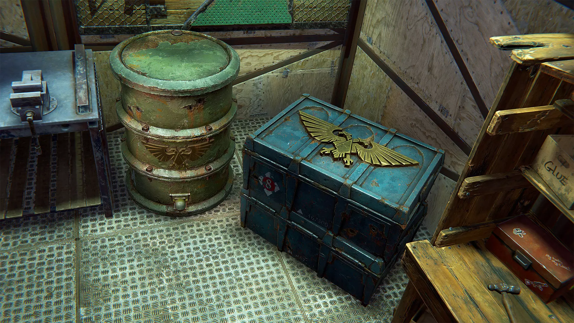 克里格死亡军团储物容器 《腐蚀》x《战锤40000》组合包的最后两件物品——两款克里格风格的储物桶,分别为立式和卧式变体。它们是独立储物桶物品的皮肤。