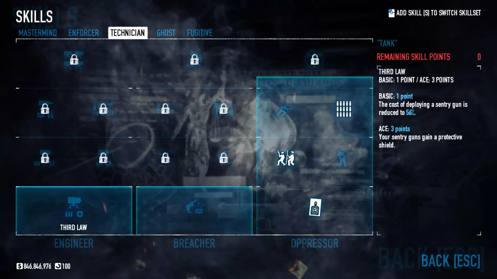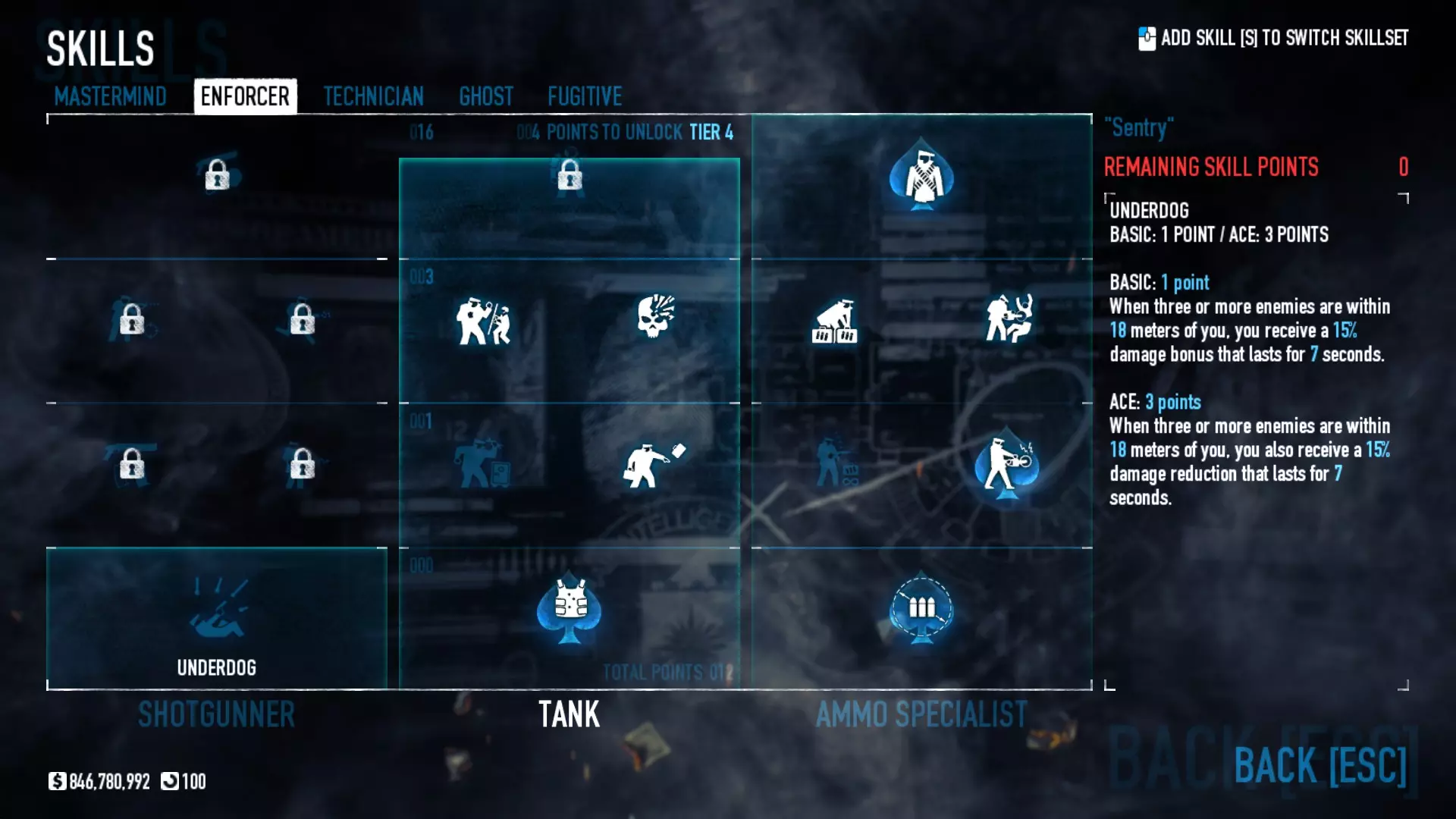 坦克流派的唯一目标就是为团队吸收尽可能多的伤害。为了获得最大生存能力,你需要劫持尽可能多的人质,包括策反警察,并且持续进行爆头。 哨戒机枪 需要5级恶名等级