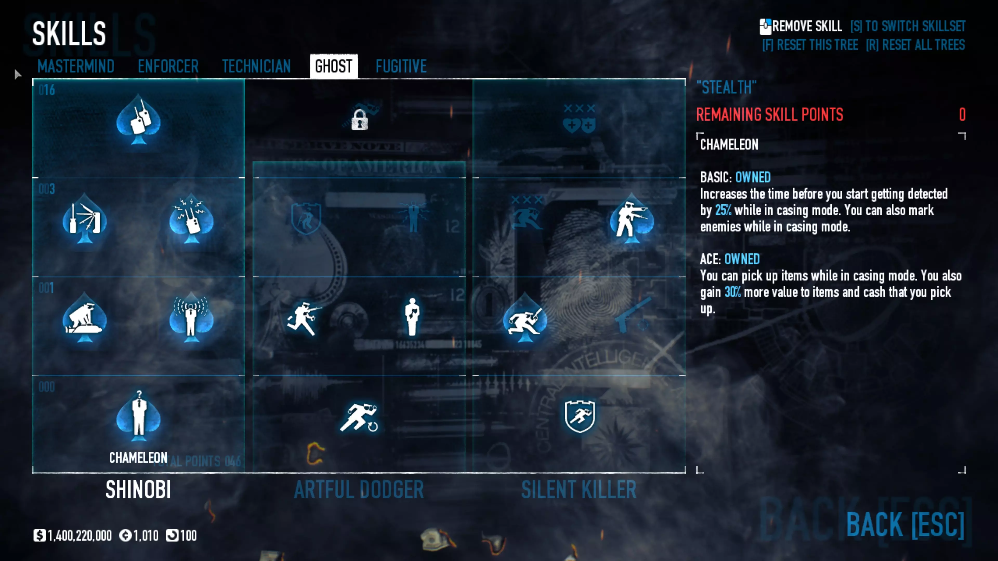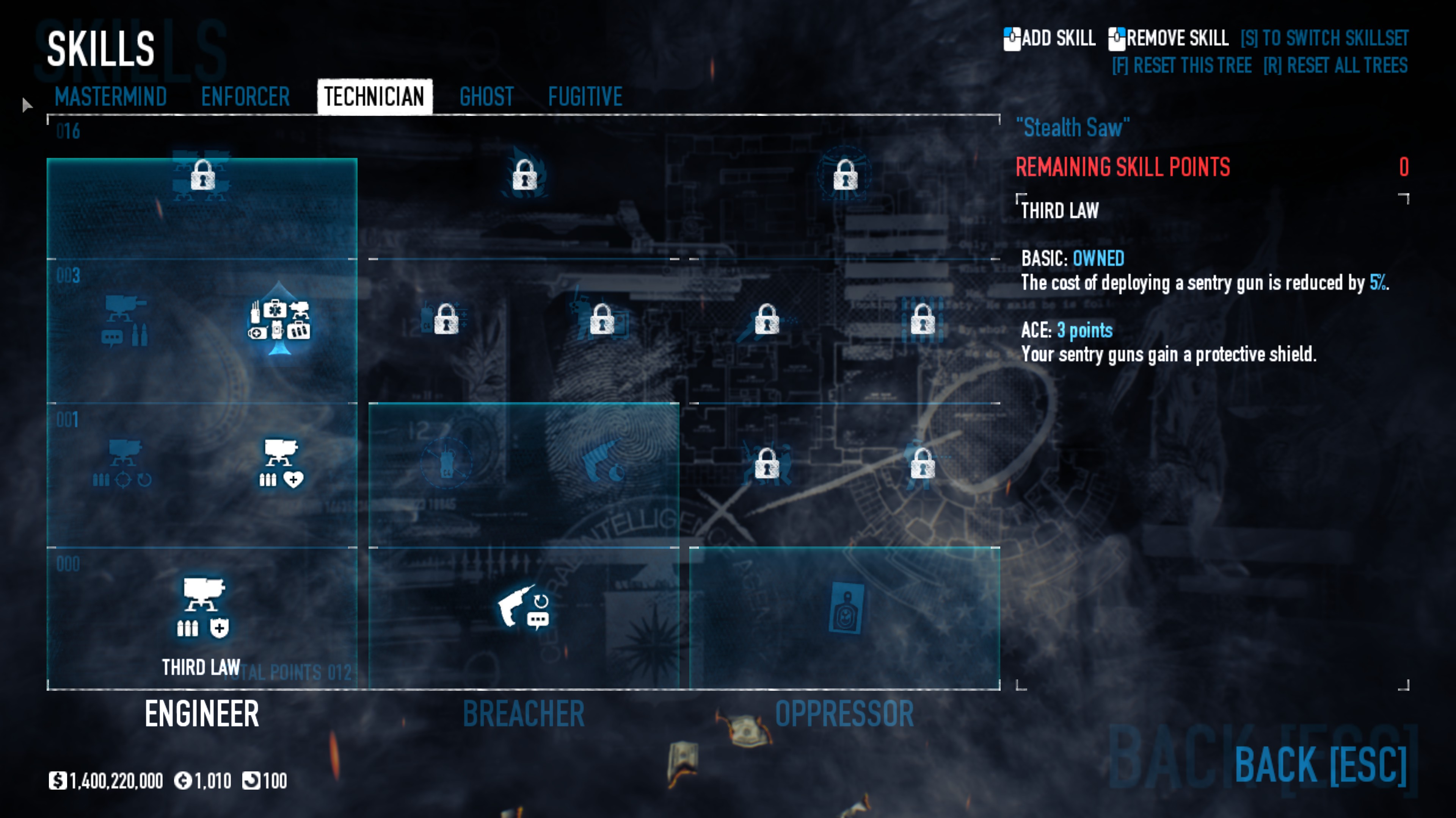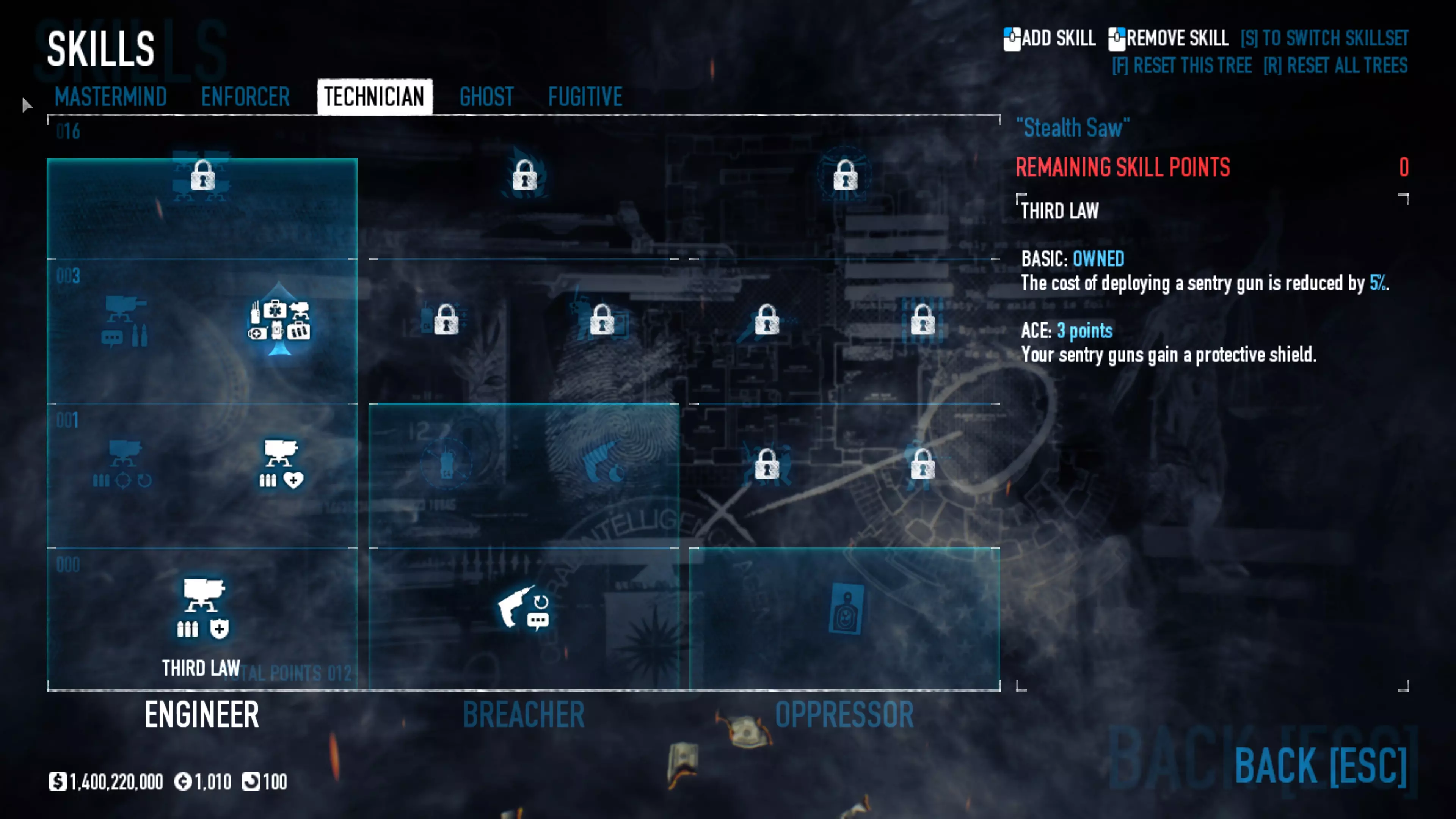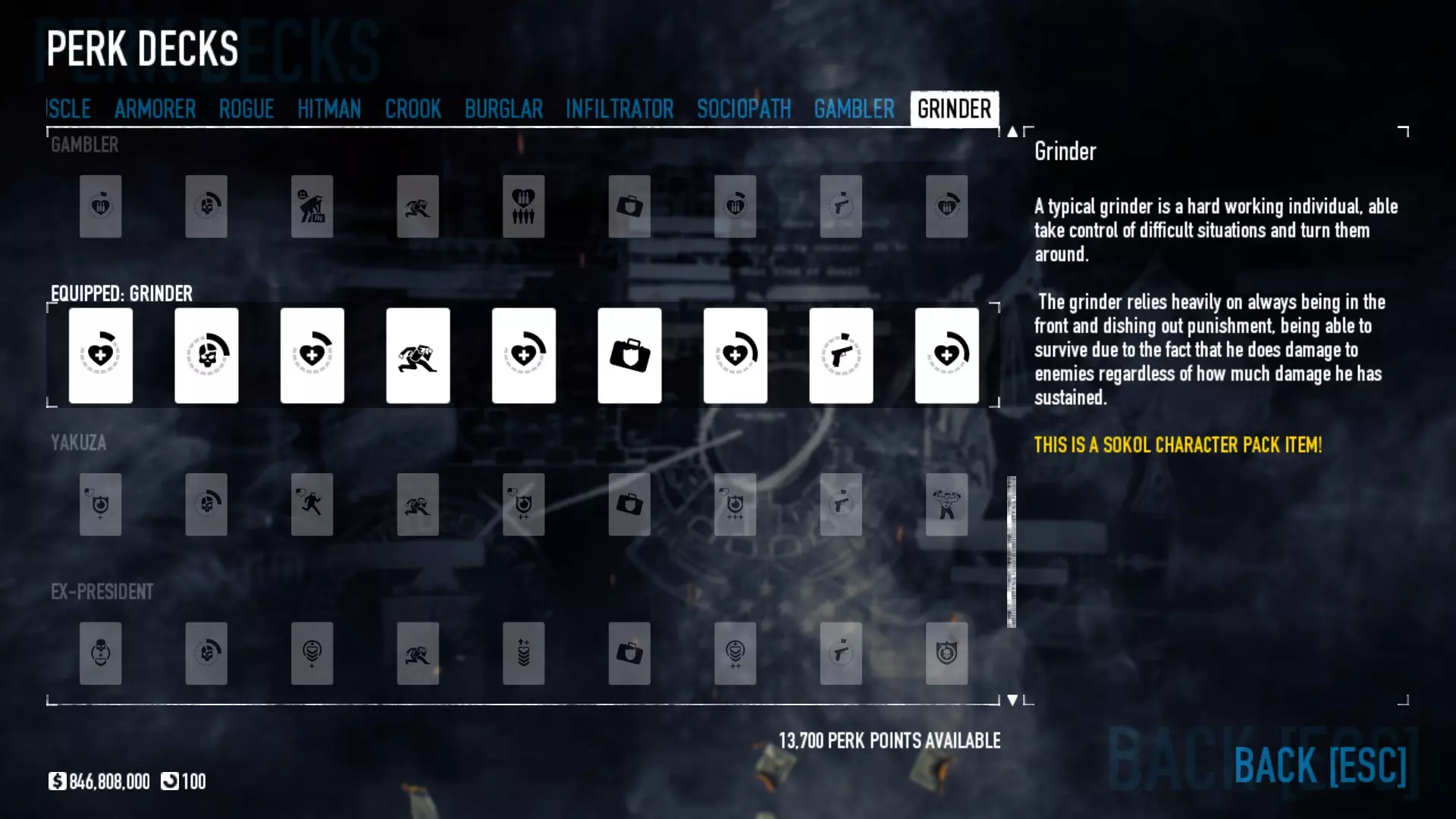 对于那些认为可以单枪匹马行动的玩家,这套配装能让你有更多独自生存的机会,但请记住,你仍然需要团队才能获胜。祝你好运。 备选技能与特长 潜行 【需要5级恶名等级】 逃犯-策划者 【需要5级恶名等级】 技师-策划者 【需要5级恶名等级】 执法者 【需要5级恶名等级】 策划者-执法者 【需要5级恶名等级】 保险箱、钻头与皮肤 一些老式保险箱需要购买钻头才能打开,而所有新保险箱(自2016年6月24日起掉落的)无需钻头即可打开。平均每周会获得一次安全掉落。要打开它们,只需启动游戏,然后在主菜单点击【Steam 库存】,点击安全箱即可开启并获得新皮肤。