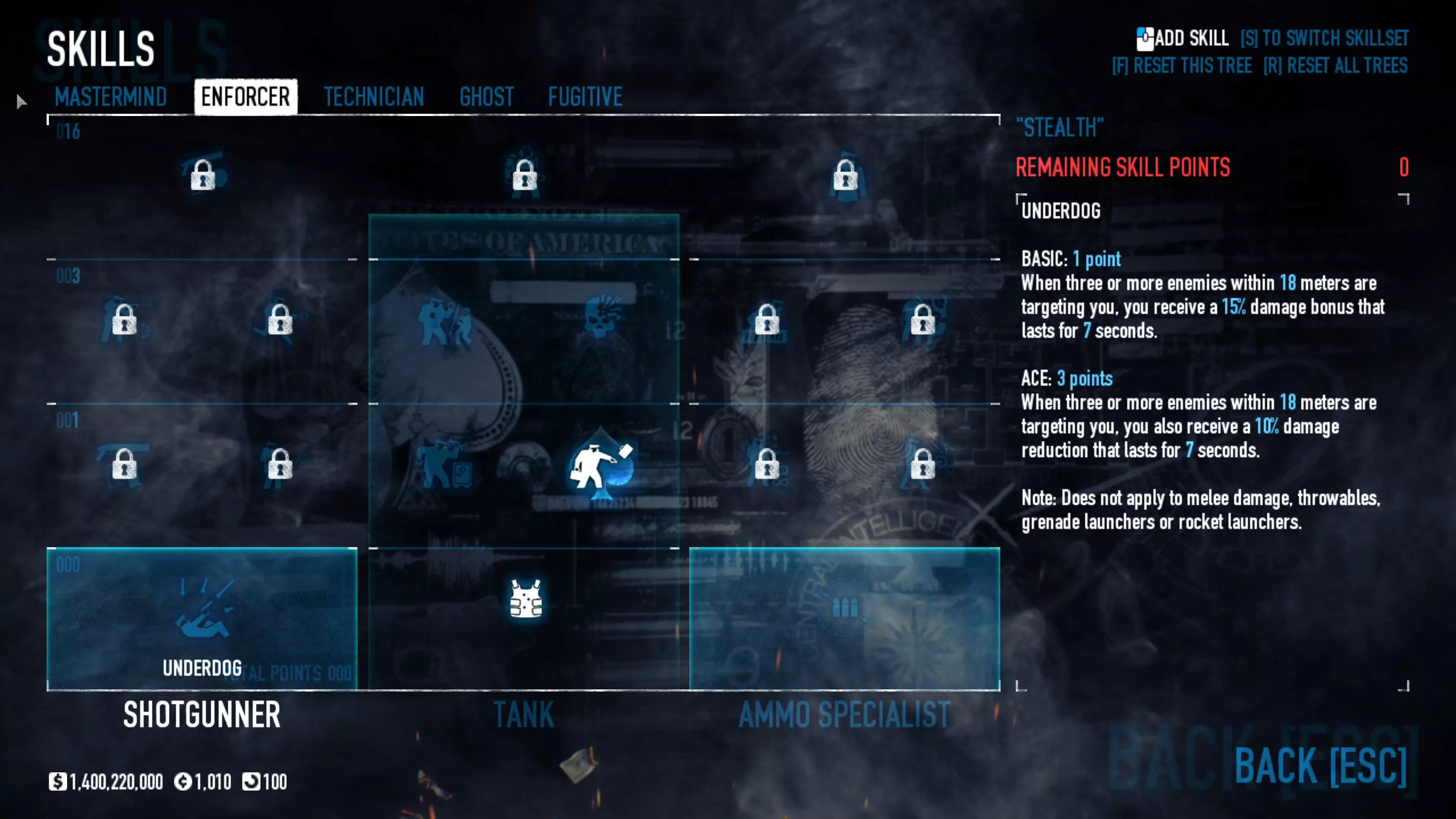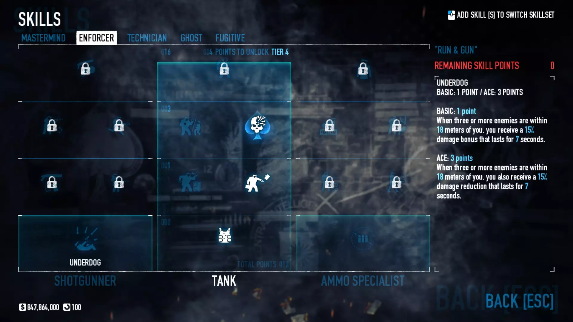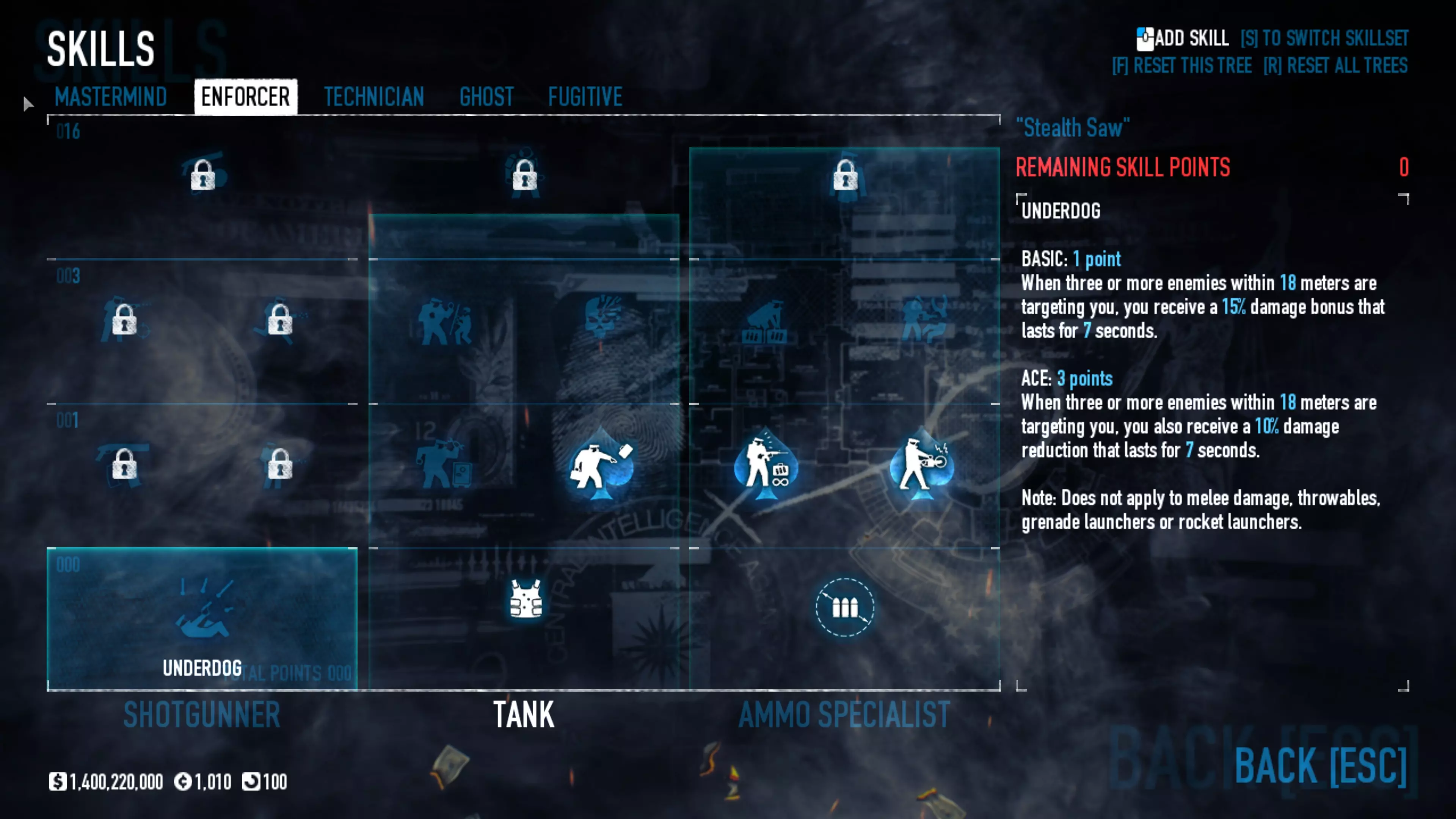 闪避玩法的核心在于移动……你需要不断移动。像疯子一样四处奔跑,然后继续跑。始终瞄准头部。如果你直接跑到 Bulldozer(重型突击兵)面前近距离射击他们的面部,一弹匣子弹就能将其击杀。这套配装专注于消音手枪和快速复活,所以确保使用双持手枪并配备扩展弹匣(如果有的话),同时选择一把伤害不错的副手枪(比如沙漠之鹰)。这套配装要求你穿上西装以获得最大闪避率。 坦克 需要5级恶名等级