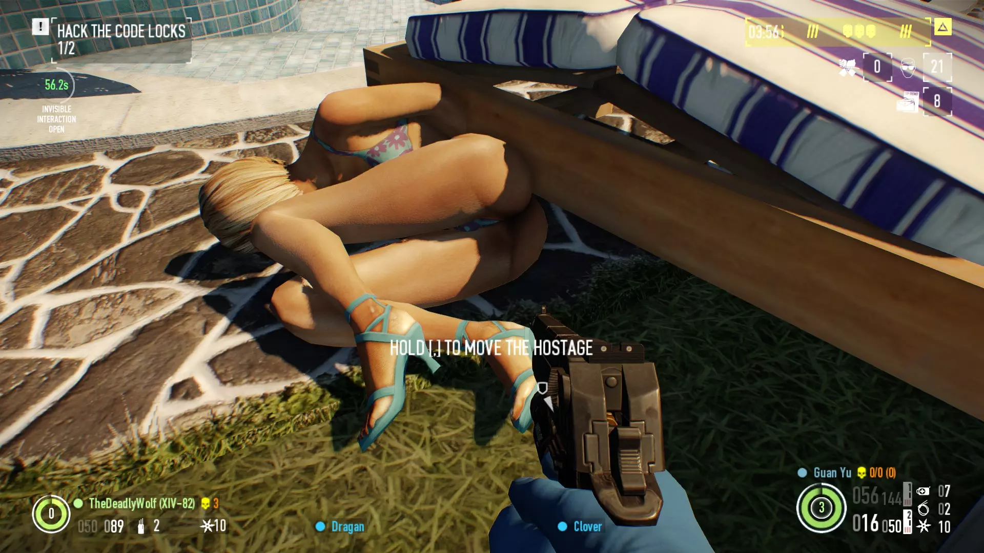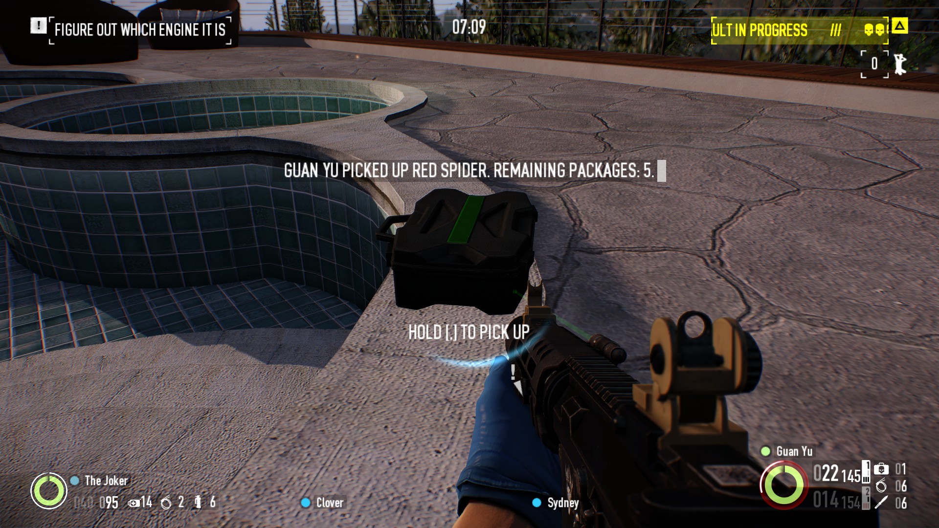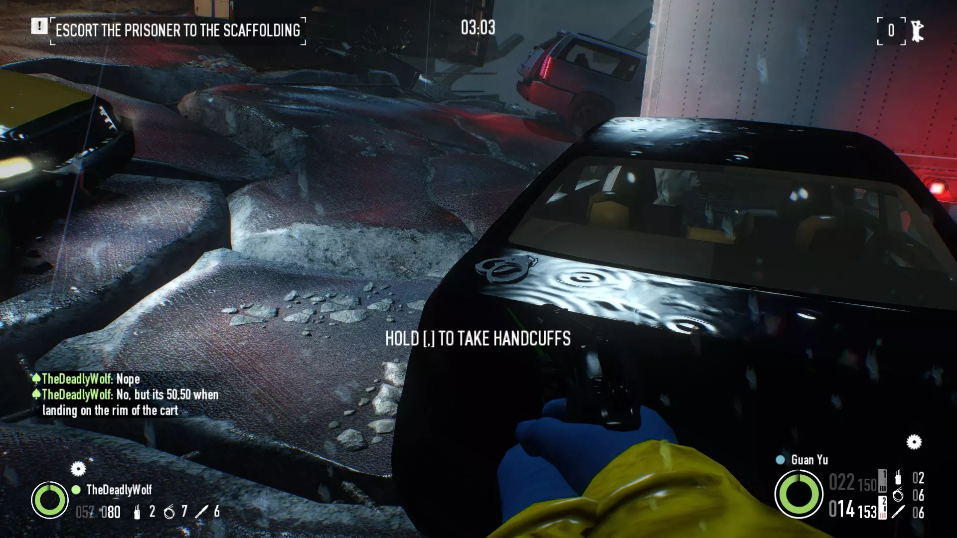 被绑住 这里有6个可能的位置 1. 沿着桥的左侧走,直到你看到白色面包车。 2. 沿着桥的右侧往下走(走到一半)。 3. 桥的远端右侧延伸部分。 4. 桥上最后一辆警车,离第三辆运输车最近。 5. 桥尽头右侧的黑色汽车。 6. 在GenSec装甲卡车附近,继续往前走,它就在左边。