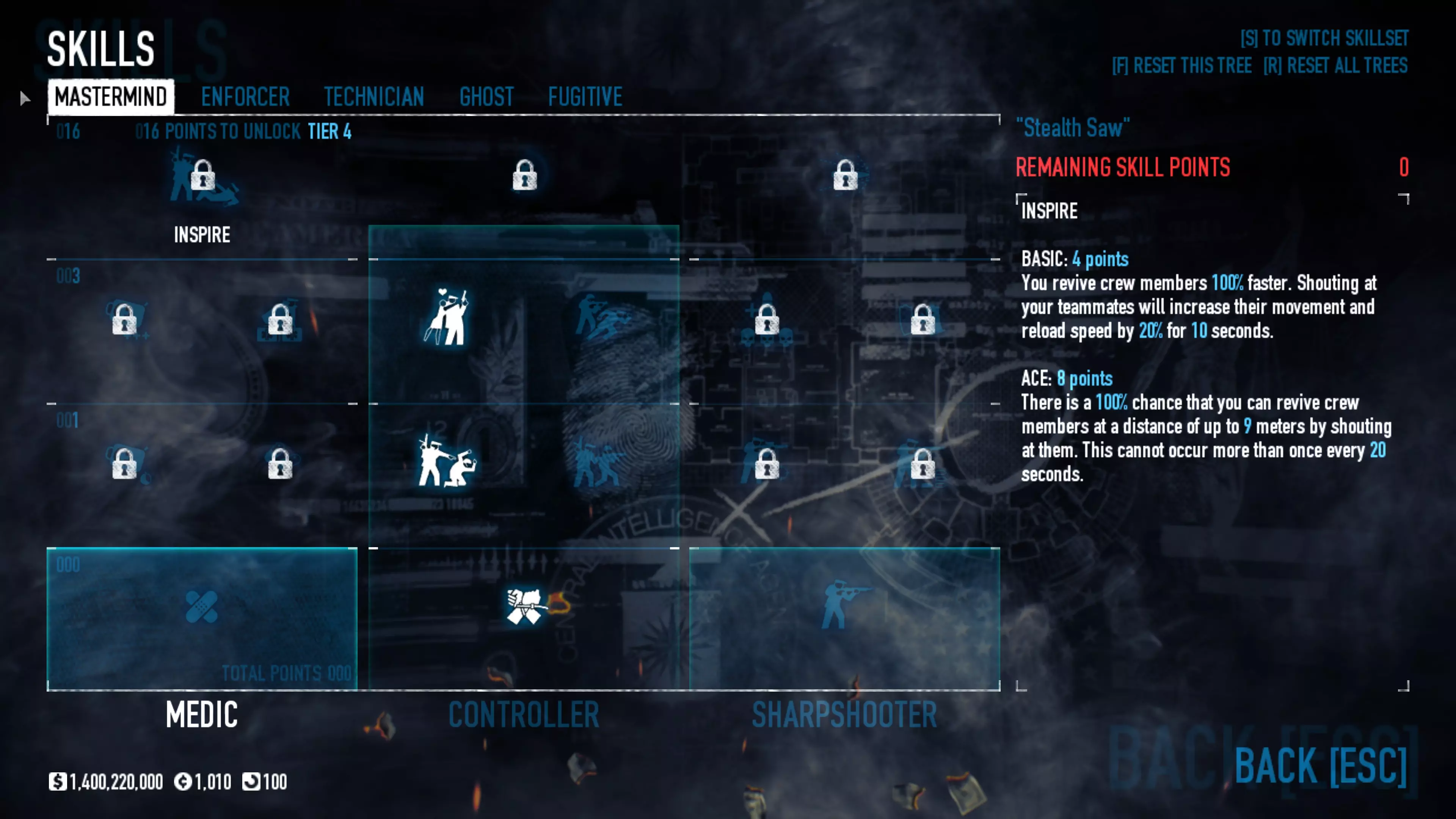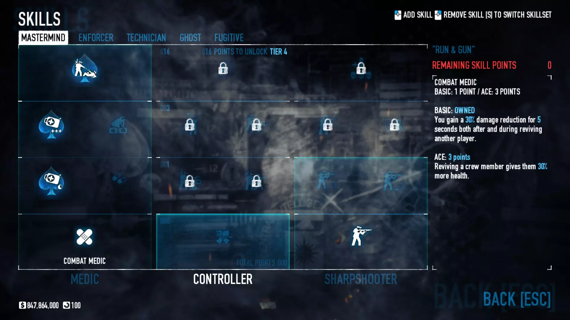 Quick Cash and Experiance Ecm rush is probably the best way to get quick cash and experience... For those that don’t know what ecm rush is... It’s where you chain your ecms one after another that delays all the phones and pagers, allowing you to get in and out without any police arriving. (for this you'll be best using the 'Ghost' build given above. Why spend 20-30 minutes on a level when you can do it in 4 minutes. Please note that all money and experiance can vary depending on Infamy level, Skills, Perk Deck completition, Weapon mods and Extra loot collected ECM rush levels Art Gallery $500,000 - 70,000xp (3 minutes) Go to the right and enter the door into the bathroom, place ECM then run in and kill the guards in your way, keep the chain going while grabbing the paintings and throw them near the lobby, once all have been collected just take them to the van. (there are laser on one of the archways, don’t run through them or the alarm sounds, just run round the other way. Video Shown on Bains Levels All Bank Heists $1.5 million - 500,000xp (9 minutes) Find the control room, place ecm on the door to open it, kill the guard and answer his pager. Then place your ECM, kill the 2 tellers, the 3 remaining guards and control the civilians. Once the ECM has ran out just answer the 3 pagers. you can be drilling the vault in less than 90 seconds. Video Shown on Bains Levels Diamond Store $900,000 - 140,000xp (6 Minutes) Run down the left ally way and kill the guard in the control room, then head towards the back and pick the lock up the stairs, wait for the manageress to come then shoot her in the face, collect her card and find the panel to deactivate the glass. ( its either in one of the offices upstairs, in the control room or in the store itself at the bottom of the stairs) This need to be deactivated before you can break any glass. Place ECM and kill the remaining guards and control the civilians, shoot them if need be. Video Shown on Bains Levels Jewellery Store $500,000 - 70,000xp (4 minutes) Place ECM straight away then run in through the front door, kill the guard and head out back to kill the other 2 guards, control the civs and answer the pagers...then loot the place. Video Shown on Bains Levels Shadow Raid $12 million - 180,000xp (5 minutes) On this one you need to do pre-planning before the mission starts (click backup, then loot drop off, then select warehouse doors garbage) Run in through the main gate 'Shoot the pad lock if the gate is locked' then place ecm along the way. (a good ecm chain in a must in this if you want to empty the vault as well) 1 person loots the upstairs, 1 person loots the downstairs, 1 loots outside and the last person puts all the bags in the rubbish bin just outside the door. Once the alarm sounds head back to the van. Video Shown on Bains Levels Four Stores $570,000 - 200,000xp (4 minutes) ECM straight away then kill EVERYONE, once the ecm chain has finished answer the pagers, finish looting until the van arrives. Video Shown on Vlads Levels Nightclub $500,000 - 250,000xp (6 minutes) ECM straight away, shoot all the guards and control or shoot the civilians. then drill or pick the safes Video Shown on Vlad's Levels Ukrainian Job $100,000 - 150,000xp (30 seconds) On this one, one person must have ECMs and another have the technician build. One person places the ECM's while the other blows the safes with C4 and grabs the Tiara. (can only be done on very hard) Video Shown on Vlad's Levels