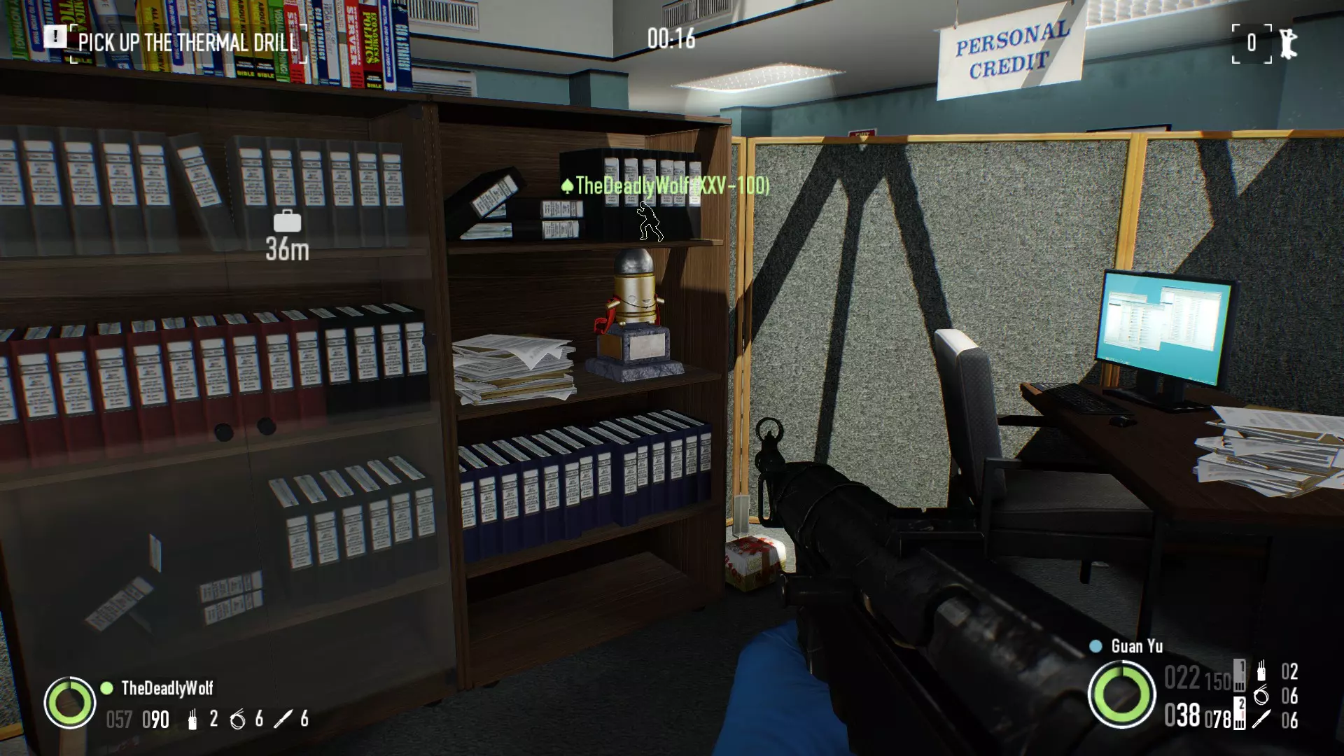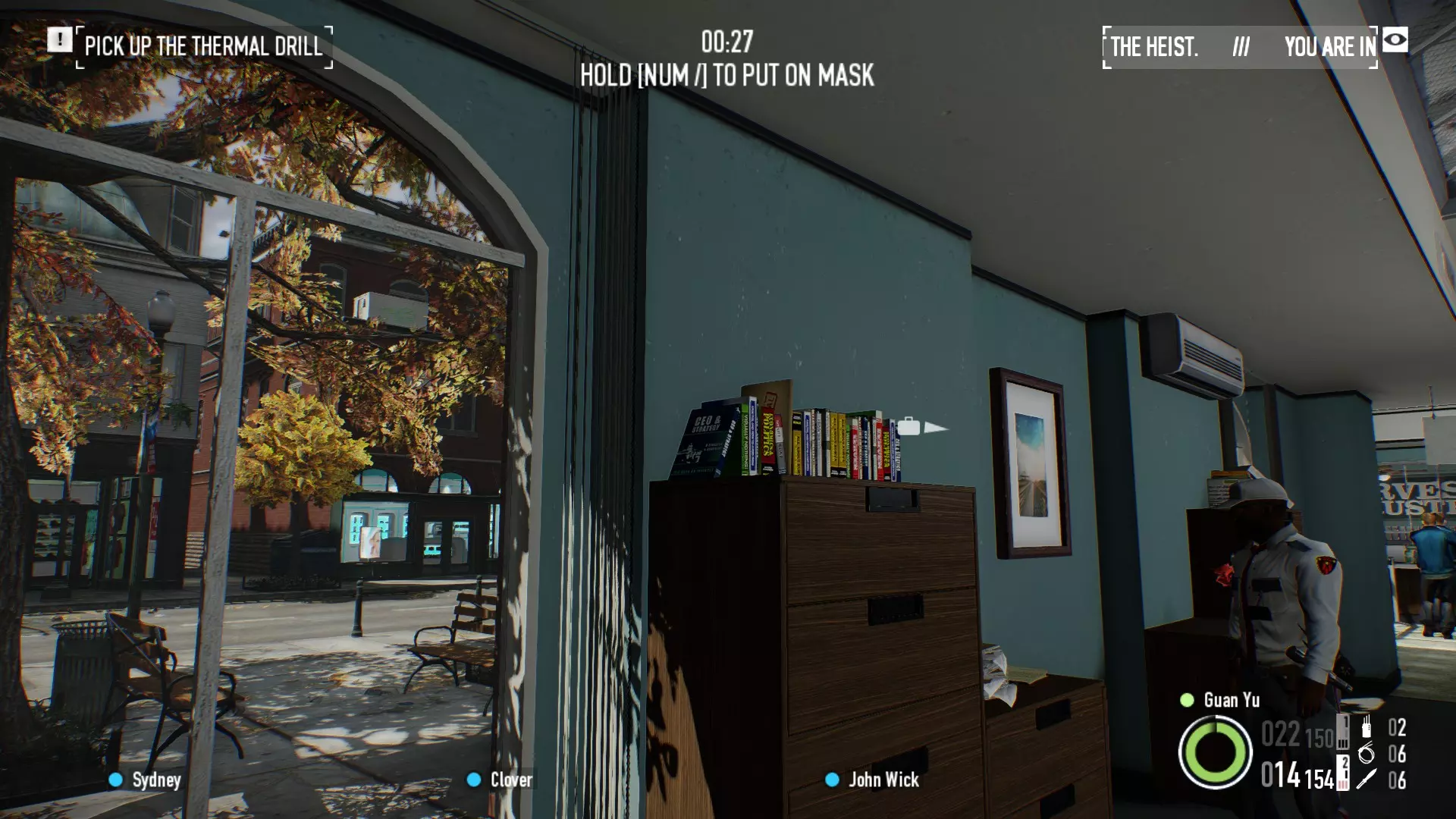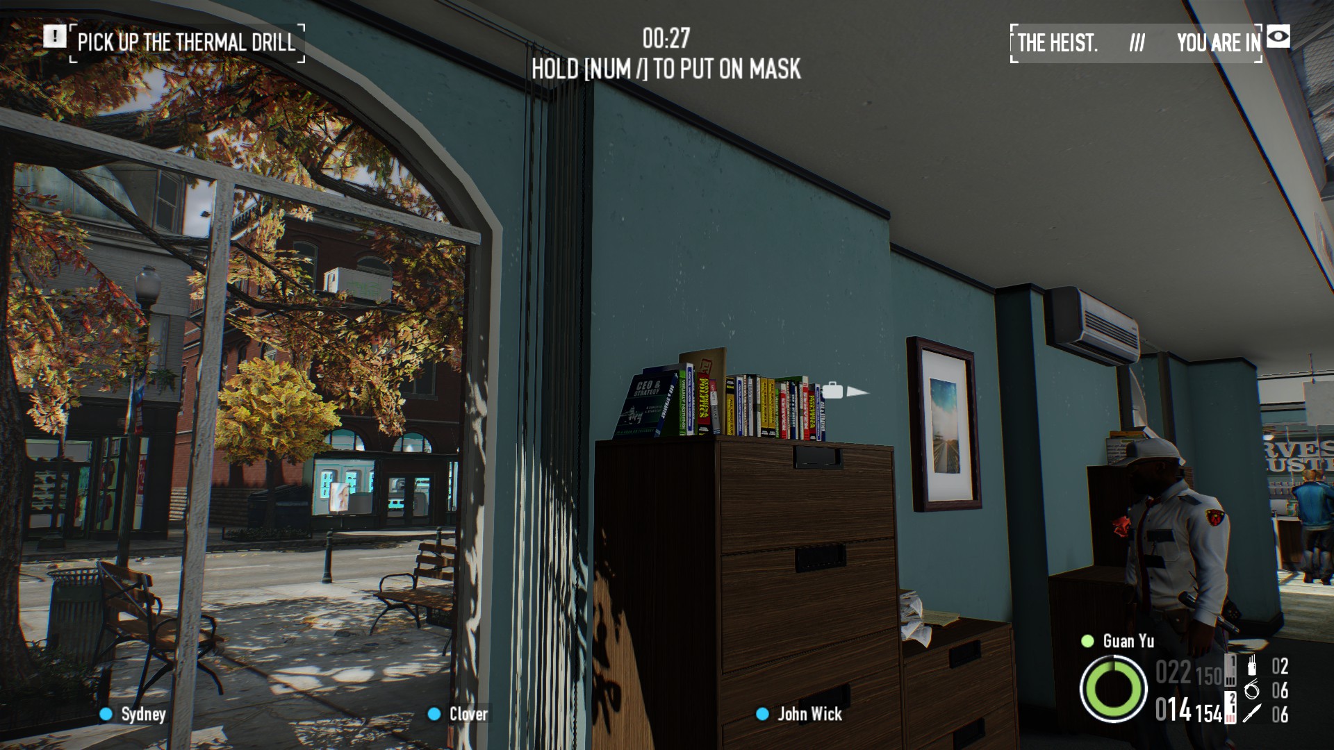 在银行劫案:存款关卡中,经理办公室对面的书架顶部