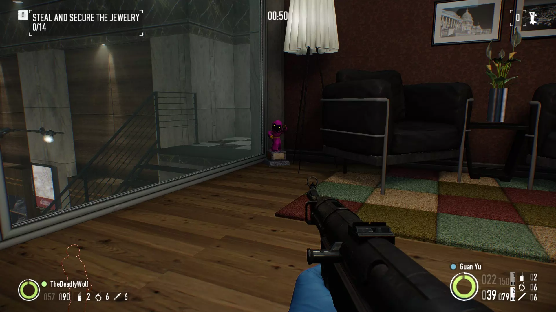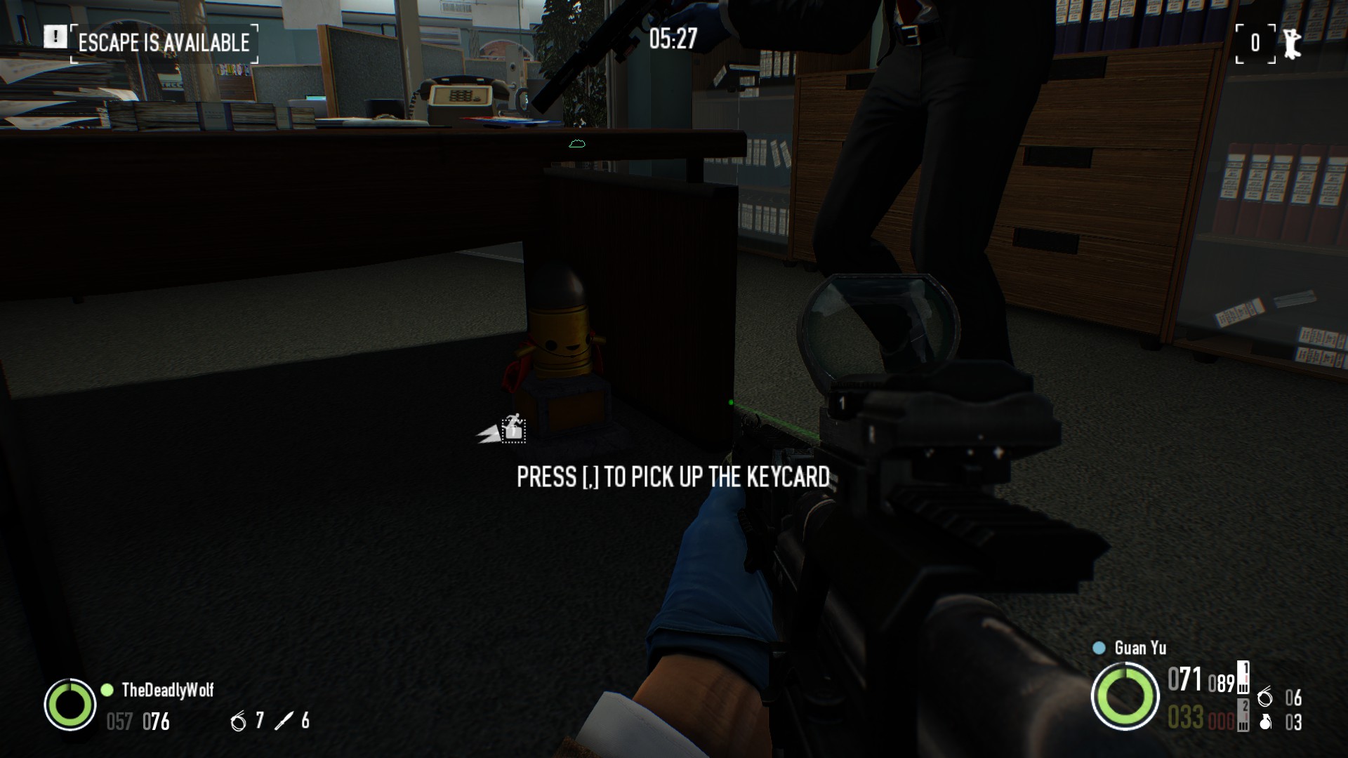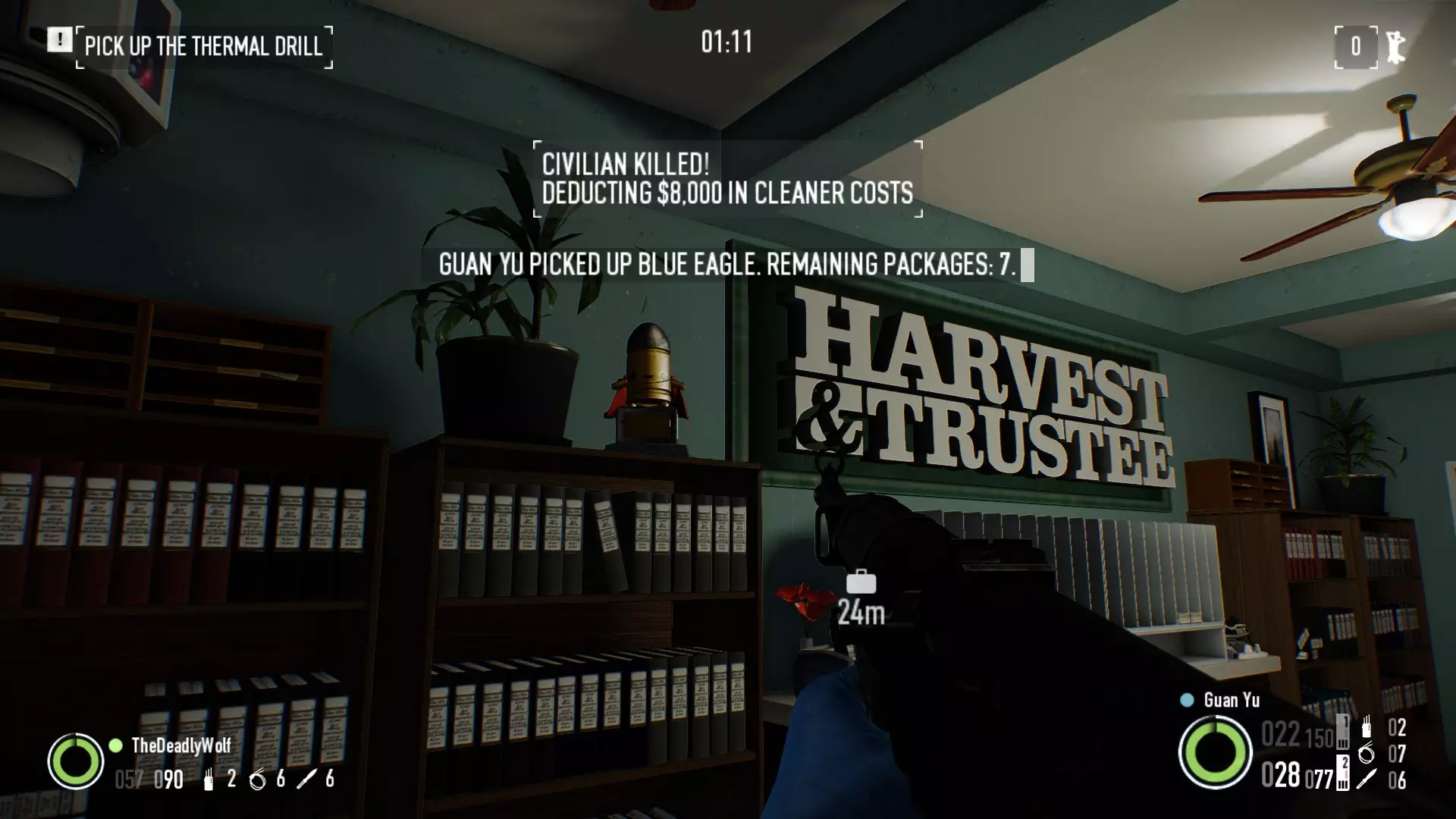 在银行劫案:存款关卡中,经理办公室对面的书架顶部