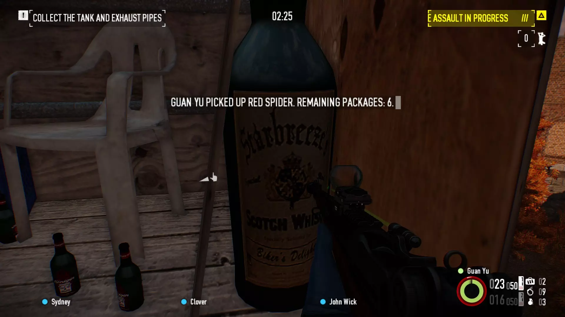成就 许多成就仅需在不同难度下完成任务即可获得,其他成就的说明可在成就列表中查看。以下是一些需要额外说明的成就: 400 Bucks:在余震关卡中,当你炸开墙壁以获取卡车时,该区域会有一个穿着蓝色连帽衫的平民。用束缚带将其绑住即可获得此成就;若此方法无效,可杀死他并捡起他的刀,此时全队成员都将获得该成就。 Bullet Dodger:在运输地下通道关卡中,在遭遇袭击时成功逃脱,即可获得街头逃脱成就。这是基于百分比的,尽可能多地击杀平民以提高获得逃脱的百分比几率,同时在突袭期间离开。 连跳:在任意关卡找到一个门口,站在里面不断按跳跃键,持续尝试直到解锁成就。 方法如下:在“屠宰场”关卡,当运送卡片和物资的车辆向你驶来,你需要射击“Gensec”面包车的司机。之后进入仓库,面包车会头朝下倾斜。现在只需等待5分钟,面包车就会自动掉落。 “Cappuccino to Go, Please”:在“运输公园”关卡,于突袭期间逃脱,你将触发“咖啡馆逃脱”结局。这是基于百分比的机制,尽可能多地击杀平民可以提高逃脱的概率,另外要在突袭期间撤离。 在钻石劫案中,确保场景加载完成,一旦贝恩把人从直升机上扔下来,就跳起来接近他并拿走他的钱捆。