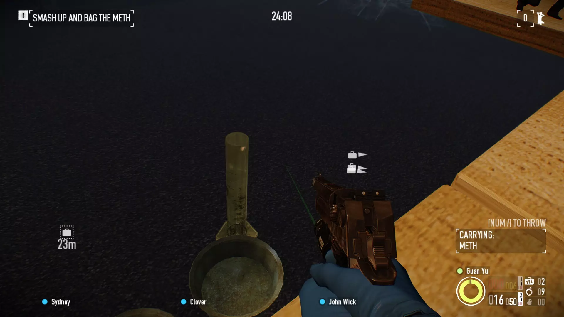 在《实验室老鼠》中,你需要在秘密地点获取一个袋子,该地点位于巨大的试管内,位置在远端靠近你必须将冰毒分装成袋的地方。