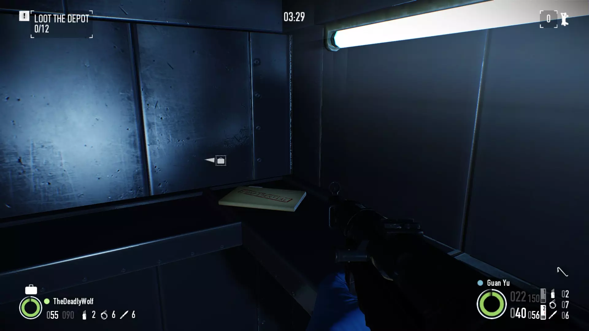 在暗影突袭中,保险库内部,顶层架子,左手边。