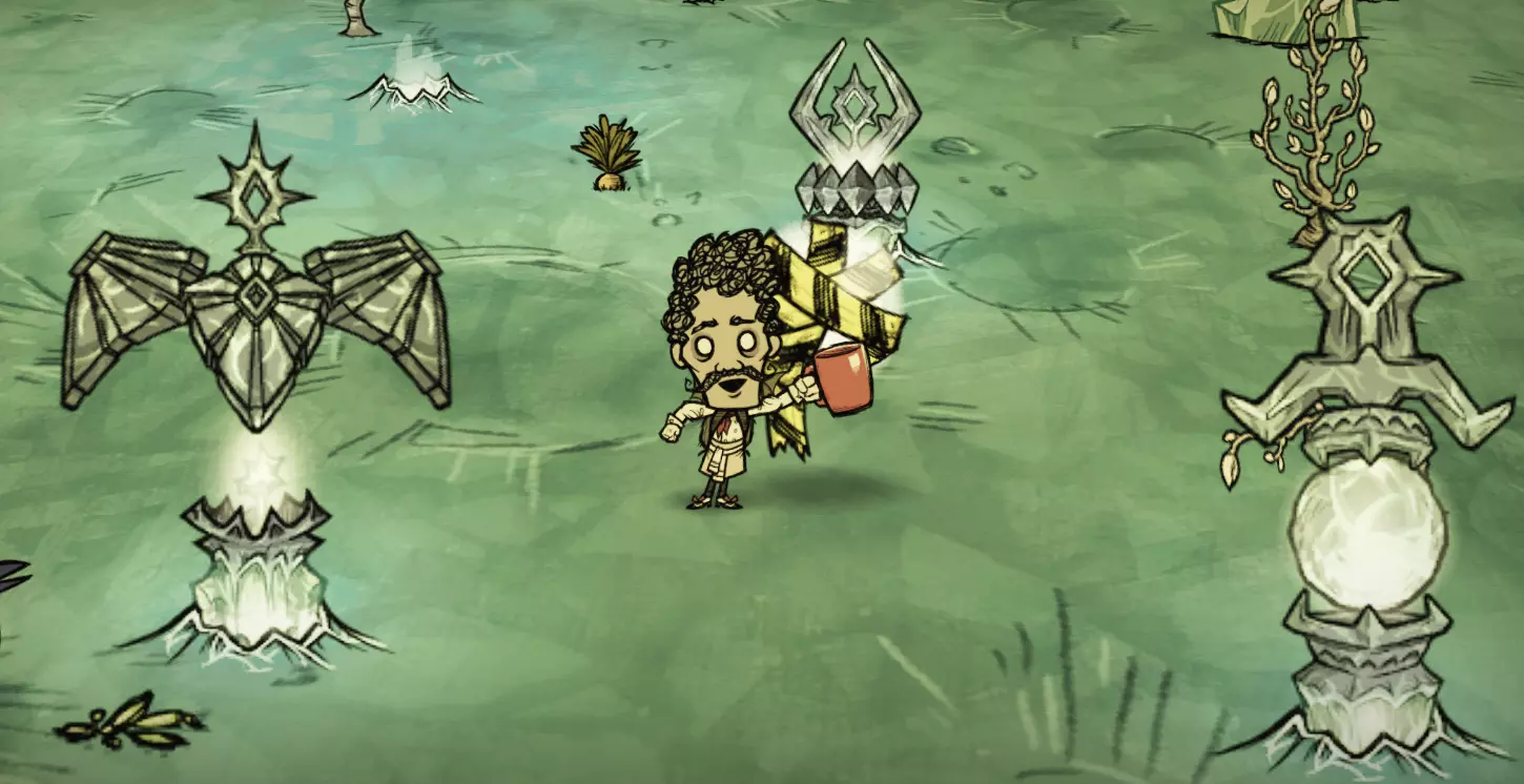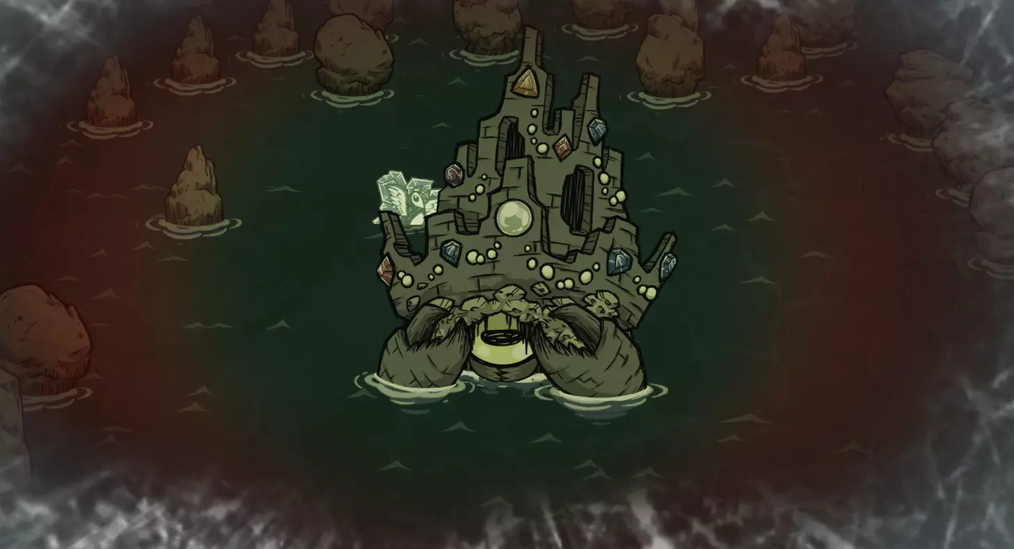 前言 在说明如何进入该传送门之前,我必须指出,你需要确保自己参与的是《饥荒:联机版》的最新测试版。此外,本文中展示的所有内容都可能发生变化,因为目前这还只是测试阶段。 同时我想说,目前无法确定这是否真的是中庭传送门的月球版本,它完全可能是其他东西。不过从目前有6个本应进入传送门却未能进入的角色(沃尔特、韦伯、薇诺娜、麦斯威尔、伍迪和WX-78),以及角色们提到“里面有东西”的台词来看,可以推测这确实是传送门。但这只是猜测,如果你对这个话题感兴趣,可以去Klei论坛查看我关于双传送门的英文理论。要想进入传送门,我们得前往月亮岛,并在那里将三个祭坛摆放成三角形。每个部分都会讲述如何获取相应的祭坛。这段旅程将会漫长且在一定程度上充满挑战。我们需要帮助隐士螃蟹,与螃蟹之王战斗,解开古代档案馆的谜题,还要保护月神召唤者法杖免受袭击!天空祭坛 第一个祭坛很容易找到。它分为3部分,散落在月球岛上。第一个祭坛的所有部件彼此距离不远,都被安置在引人注目的构造物(Inviting Formation)中。