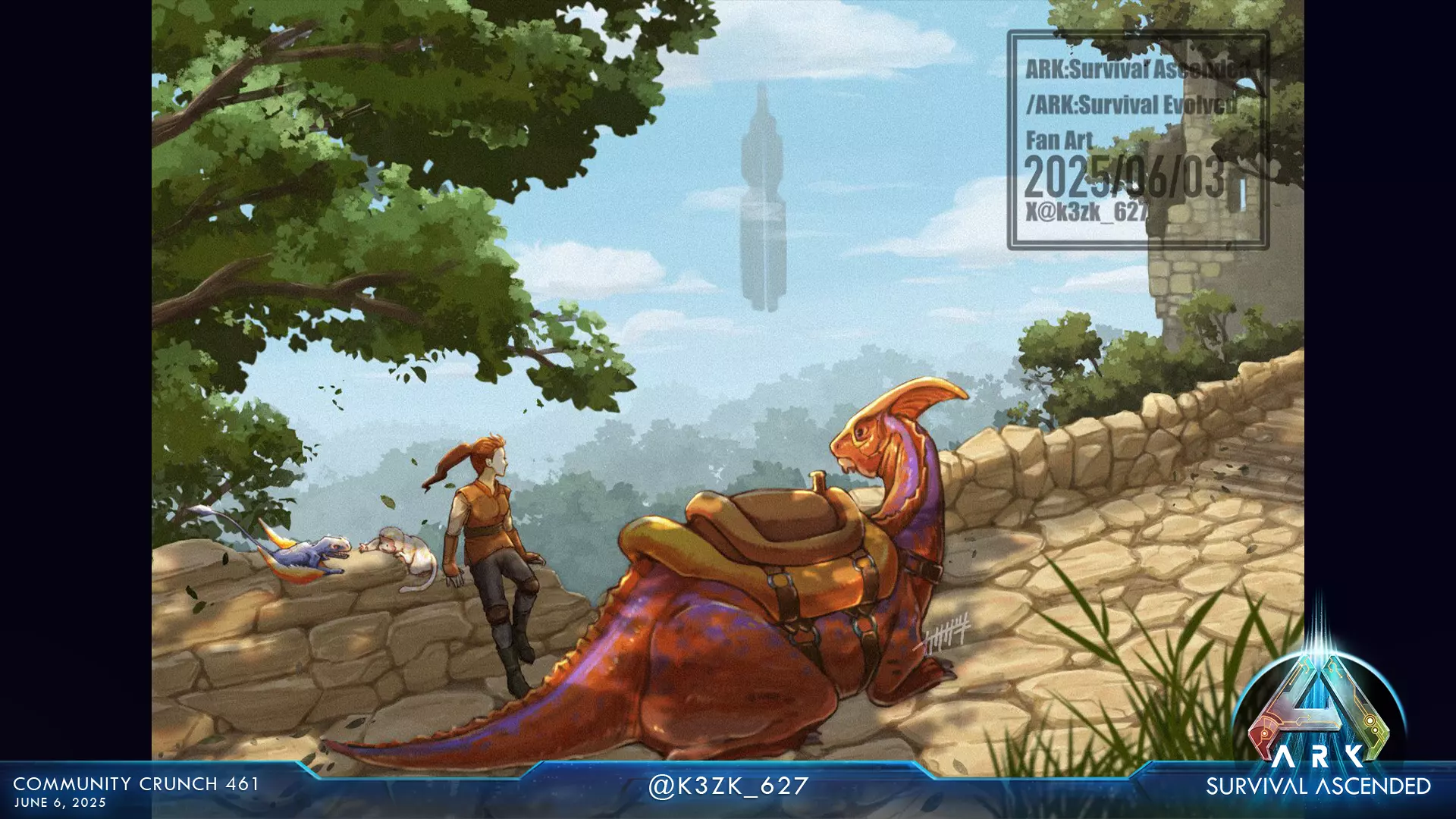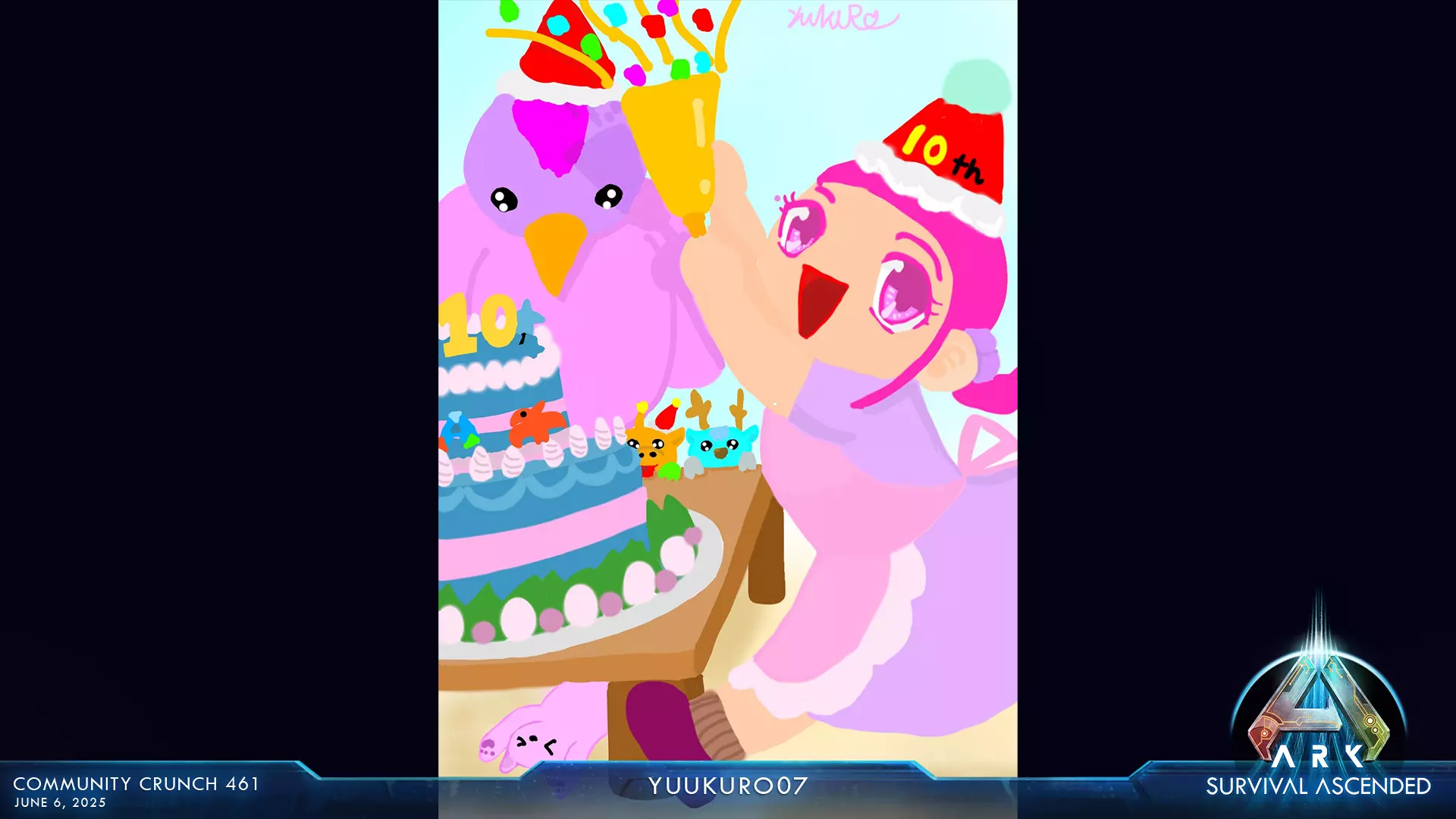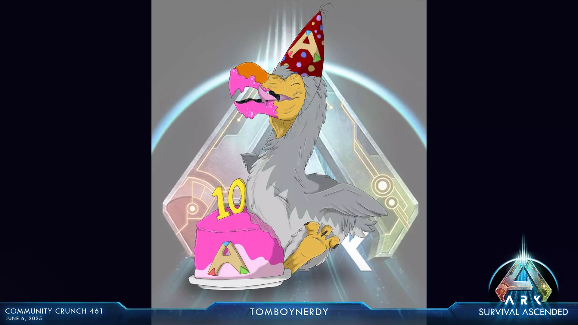 在官方ARK Discord的指定频道提交你的作品。请附上作品的简短标题或描述。让我们共同庆祝ARK的十周年。无论是你的第一次驯服、最自豪的建筑,还是对昔日部落伙伴的致敬——我们都想看看ARK对你而言意味着什么。