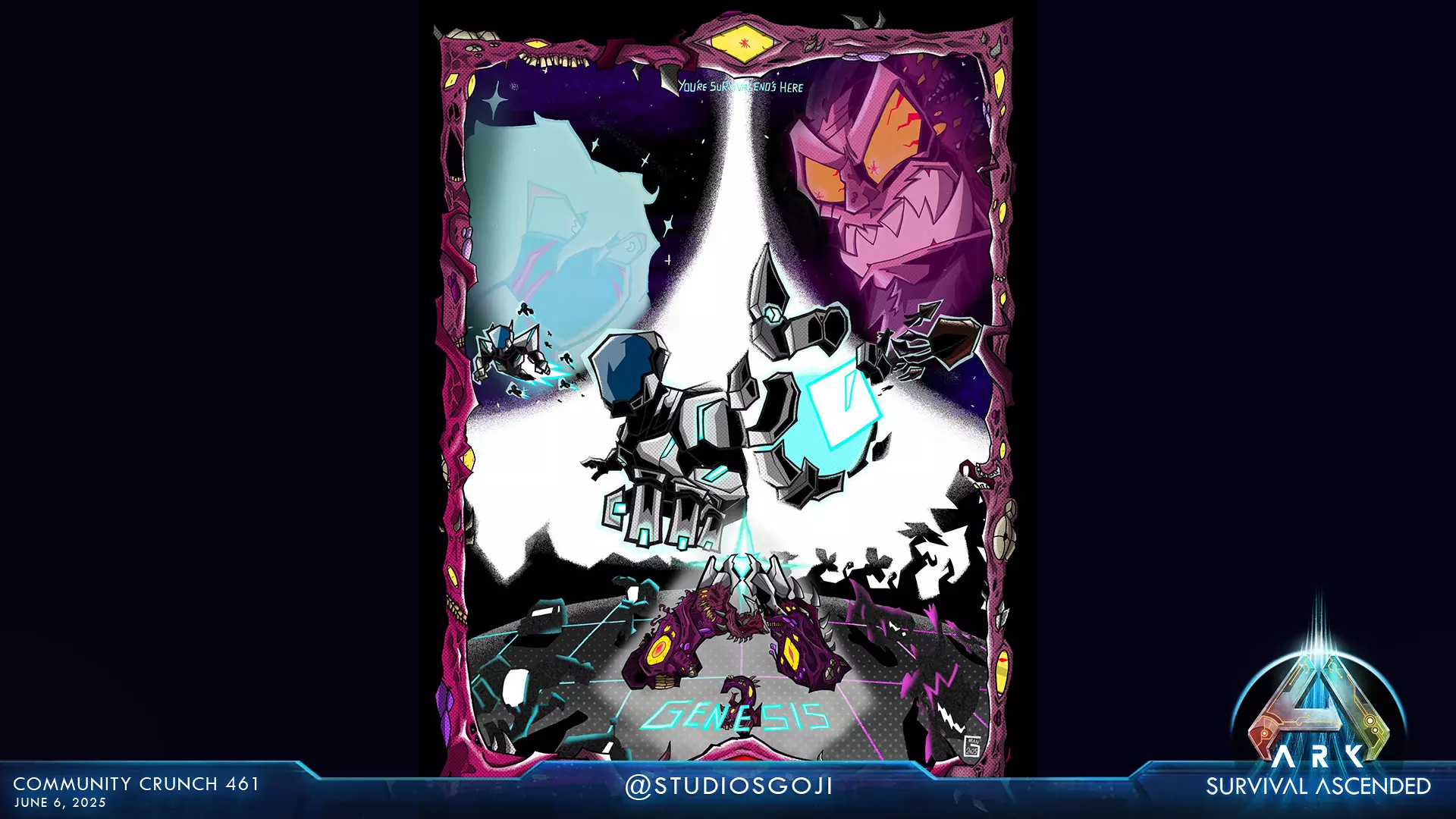 为庆祝《方舟:生存进化》10周年,我创作了我最喜欢的DLC【创世纪:第二部分】的艺术作品,作者@StudiosGoji