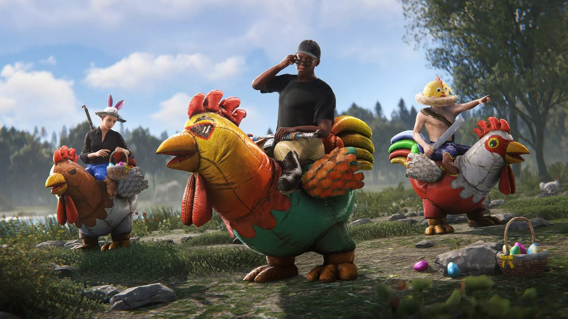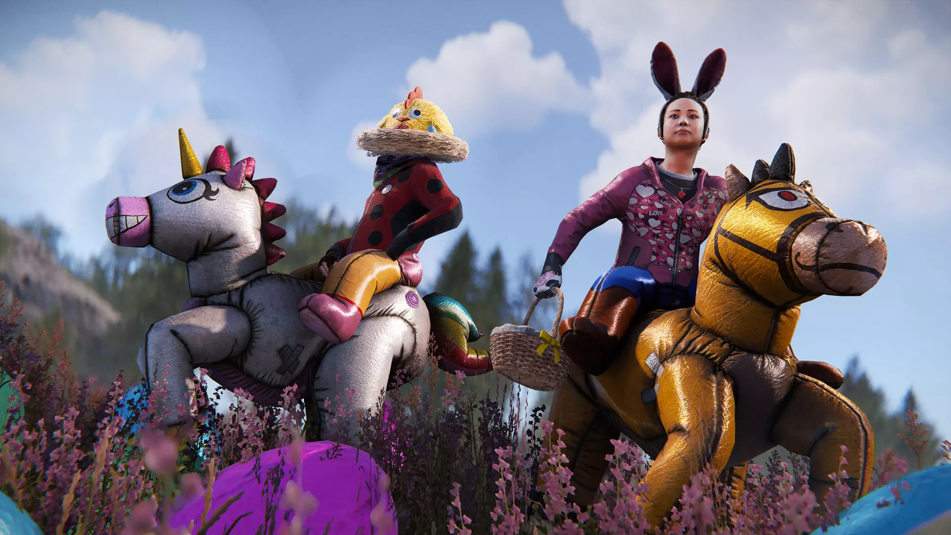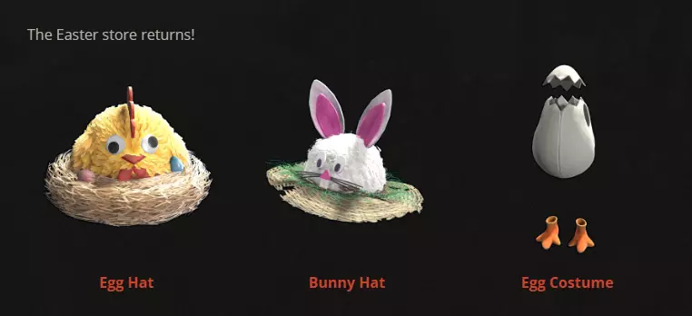如果没能登上领奖台也没关系。你收集到的彩绘蛋,每集齐10个就能升级为青铜蛋。集齐10个青铜蛋后可以升级为白银蛋,最终可以一路升级到黄金蛋! 狩猎期间有各种道具可以帮助你。复活节篮子能让你瞬间拾取鸡蛋,兔子连体衣和兔子耳朵则能通过鸡蛋视觉为你提供优势。 今年我们新增了一款服装DLC服饰——马 costume。马 costume是一种下半身穿戴物品,可以用布料和木材制作而成。