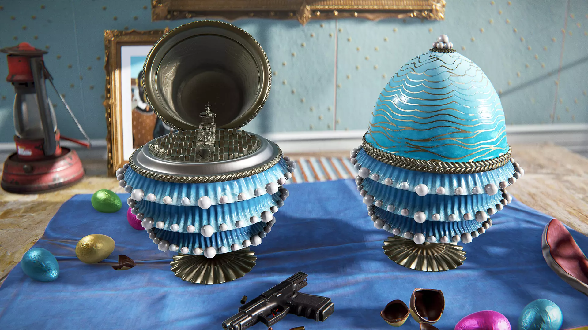 这款复活节主题的鲁斯蒂奇彩蛋以水生为主题,包含货船和RHIB巡逻艇。限时在《腐蚀》道具商店发售。复活节商店