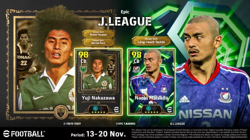 除以下列出的2名史诗球员和12名高光球员外,来自MEIJI YASUDA J1 LEAGUE的86名其他现役球员也将出现在特殊球员名单中。 史诗球员反映了他们职业生涯中某个特定赛季的出色表现。他们还拥有根据该赛季照片设计的独特卡片样式。 高光球员与标准版本相比拥有不同的属性,并且还可以进一步培养。 签下有天赋的球员来进一步提升你的球队吧!