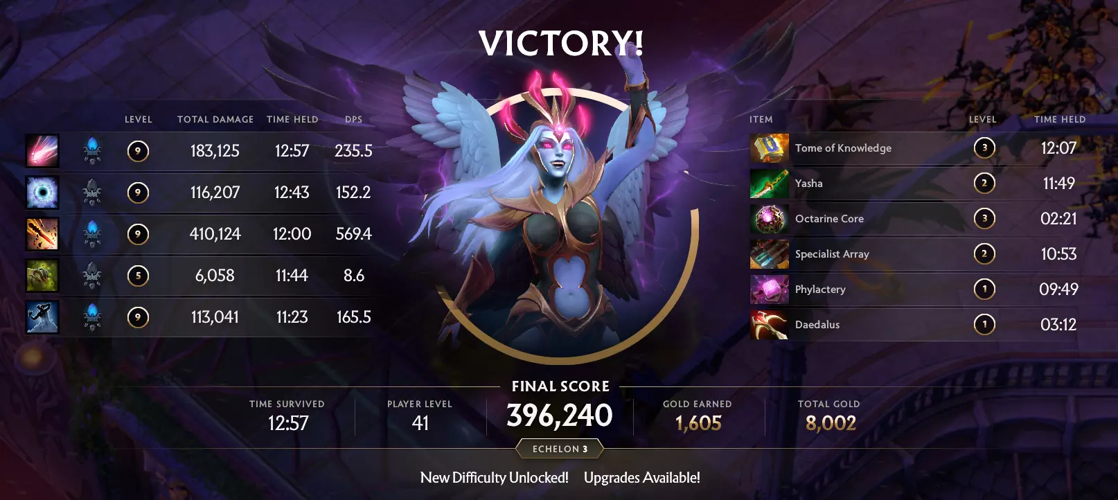 曾有一个想法在短期内获得了一些关注,那就是采用回合制JRPG风格的战斗。但没过多久我们就意识到,这并不合适。我们需要的是能让玩家快速投入战斗的模式——一种简短、激烈且有趣,足以在《Dota 2》排队等待间隙游玩的体验。 这就是幸存者类游戏的灵感来源。作为一种“反向弹幕地狱”,它有着无尽的敌人波次,是承载史诗感和高风险Boss战的完美载体。玩家需要在成群的敌人中杀出一条血路,同时运用一些策略来强化各种技能,为与因佩里亚的最终决战做准备。此外,现有的Dota物品和技能也很容易映射到这种战斗中,这样玩家就能对游戏机制有熟悉感。由于我们希望游戏体验相对简短,因此重玩价值是另一大关键。生存者类型游戏为我们提供了丰富的可变性,因为每次体验都不尽相同。玩家无法保证能按自己期望的顺序获得想要的物品或遇到特定事件。这种可变性鼓励你不断尝试,从零开始的挑战既充满难度,又不会让人觉得无法克服或沮丧。我们并不希望你第一次就能获胜……但我们希望你在失败后仍能继续游玩。 早期原型