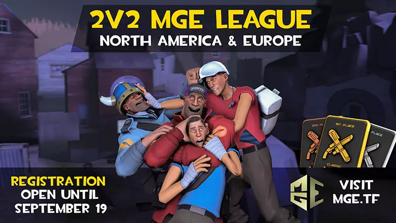 (图片来源:Shazi) 各位玩家注意啦!快找个队友,准备好迎接下一季的2v2 MGE联赛吧。 MGE.tf宣布将开启新一轮2v2联赛,本次联赛将迎来北美地区的首次亮相,即北美第一季,同时还有欧洲第二季。 联赛设有自定义奖牌、多个技能分级,常规赛为期8周,之后是季后赛。各队伍将为现金奖励、荣誉以及令人向往的第一名奖牌展开角逐。 报名通道将开放至9月19日!无论你是为了娱乐还是为了荣誉而战,都不要错过这个适合所有玩家的联赛。