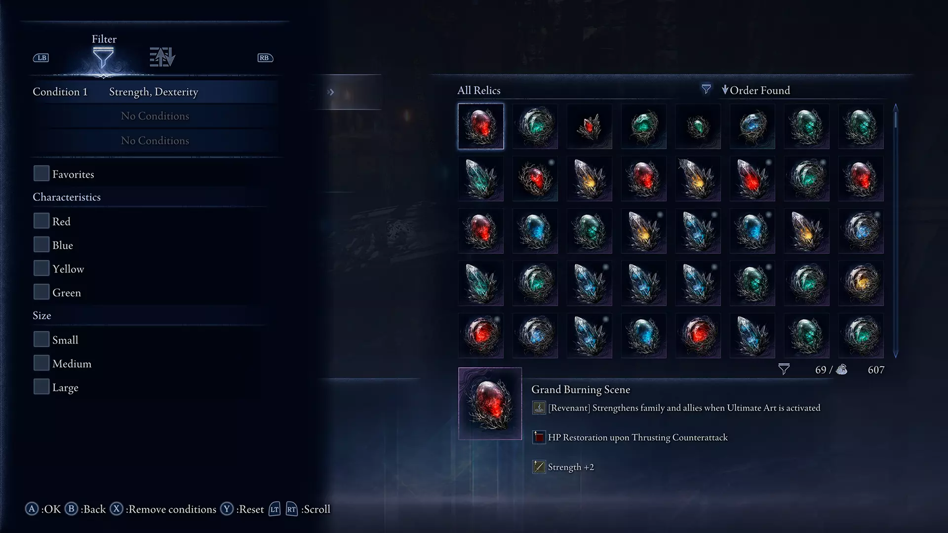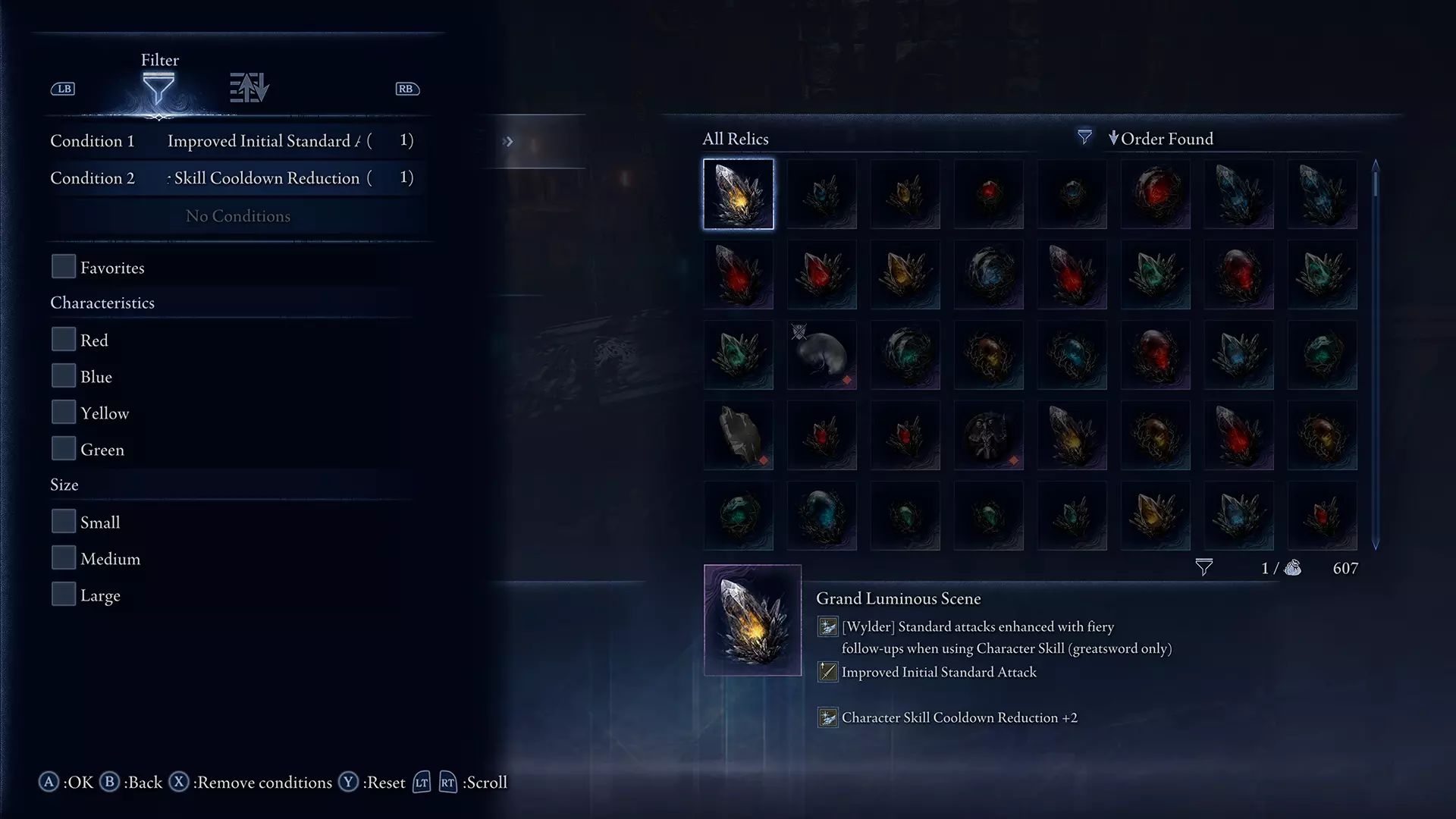 当通过多个条件选择多种效果时,仅显示满足所有条件的遗物。 增加可注册的遗物预设数量至100个。 在奖励和购买菜单中添加了出售和收藏已获得遗物的功能。