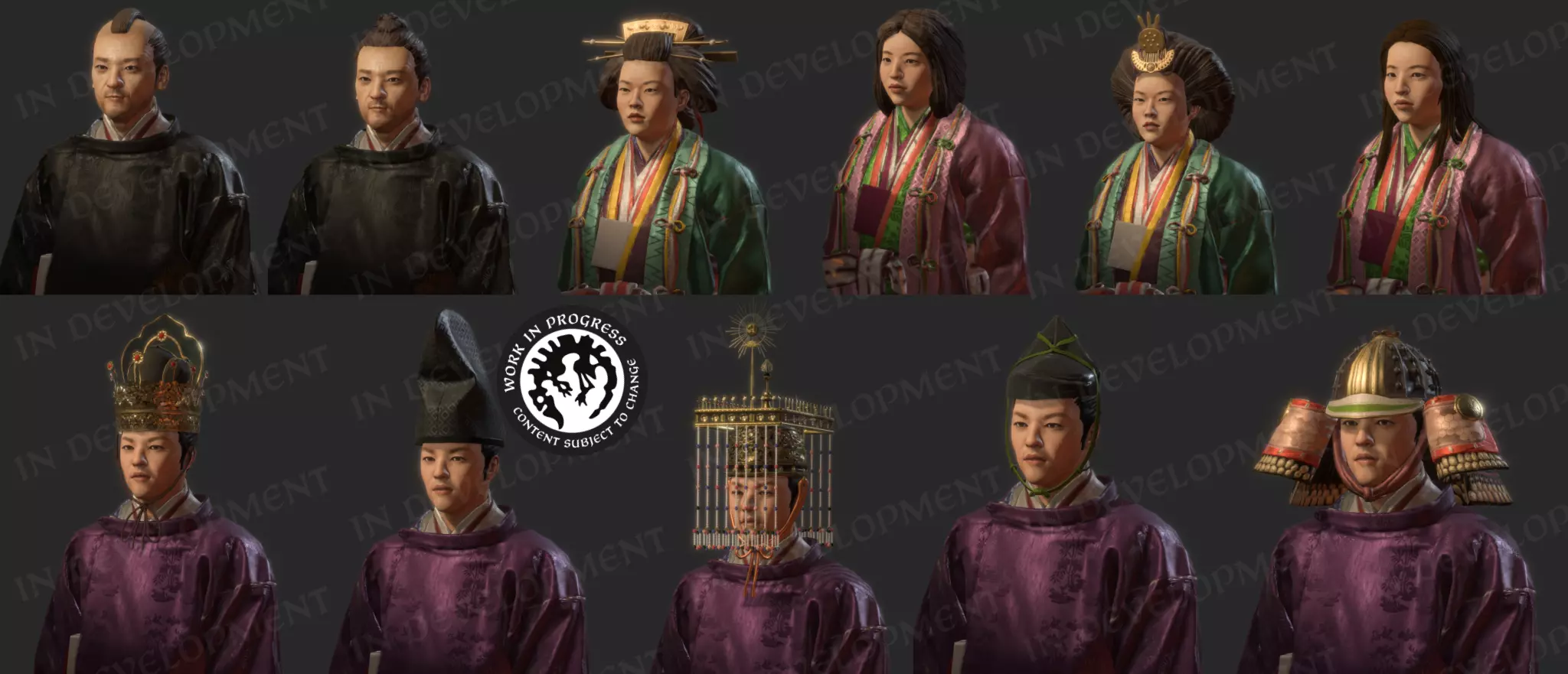 【来自东亚及东南亚各地的角色精选】 综合改进 仔细观察截图,你可能会发现《十字军之王3》当前版本与截图中的内容有些不同。我们对皮肤纹理、光照、阴影和渲染设置进行了整体改进。这会影响游戏中的所有角色(不仅仅是新地区的角色!),预计会让所有角色的外观都有所提升。