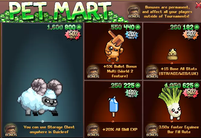 • 在全新的宠物商店中,可直接购买宠物,无需随机抽取!宠物每日轮换,有时会有折扣,且始终为可交易形式!【宠物商店的宠物来源于新旧宠物套装,但不包含捆绑包】 首届《IdleOn》大型锦标赛将于太平洋标准时间3月7日中午12点举行。 大型锦标赛在每个赛季末举办,所有黄金段位的玩家均可参与。也就是说,3月7日黄金段位的获胜者将成为首届《IdleOn》大型锦标赛冠军,并将获得极为特别的外观奖励,该奖励将于3月1日揭晓。