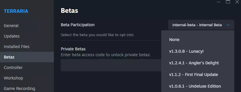 如果你错过了月总的首次登场,或者只是想重温那段回忆,现在机会来了!要游玩《泰拉瑞亚》1.3版本【疯狂月亮】,只需在Steam属性菜单的可用分支中选择它。和往常一样,这些存档会与你的核心游戏存档分开保存,以避免任何问题。 我们希望你享受这次怀旧之旅,也期待能尽快带来即将到来的《泰拉瑞亚》1.4.5版本更新的更多消息! 谢谢你们,泰拉瑞亚玩家们!