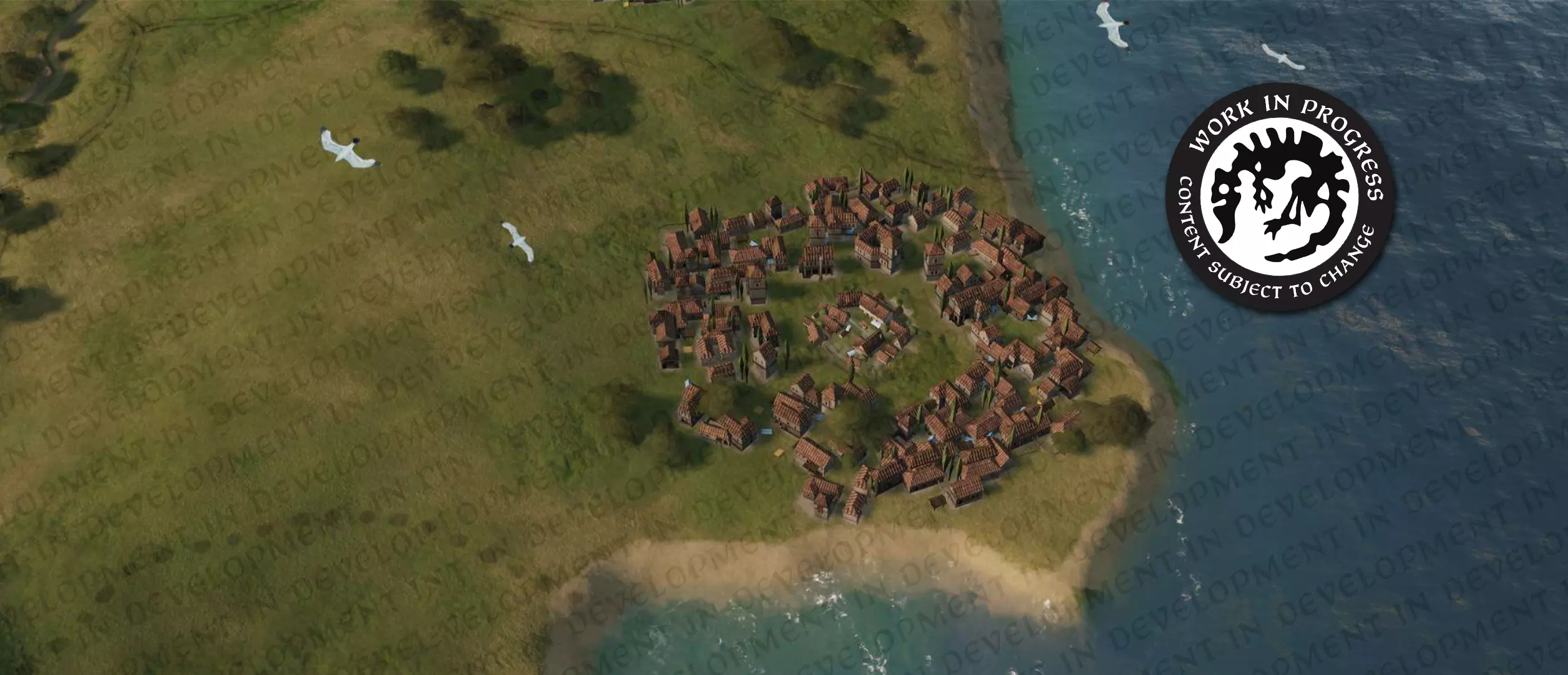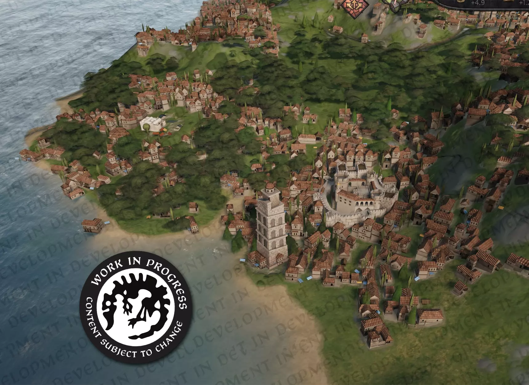 【配图:城市扩张】 城市扩张 我们团队中勇敢的艺术家们与天才技术负责人共同打造了一套动态生成城市布局的系统。随着你的发展等级提升,城市在视觉上会不断向外扩张——更多房屋、更高密度,以及更多“糟糕,我的平民住房泡沫要破裂了”的氛围。 发展等级较低时?建筑呈稀疏的集群状分布。发展等级较高时?则会变成繁华的中世纪大都市。我这只是简单描述,但背后的技术与美术工作却令人惊叹。 它能在开启RTX的情况下以4K 120帧运行吗?不能。我们只有五天时间,而非五个月。但它确实能正常运行,而且看起来非常酷。