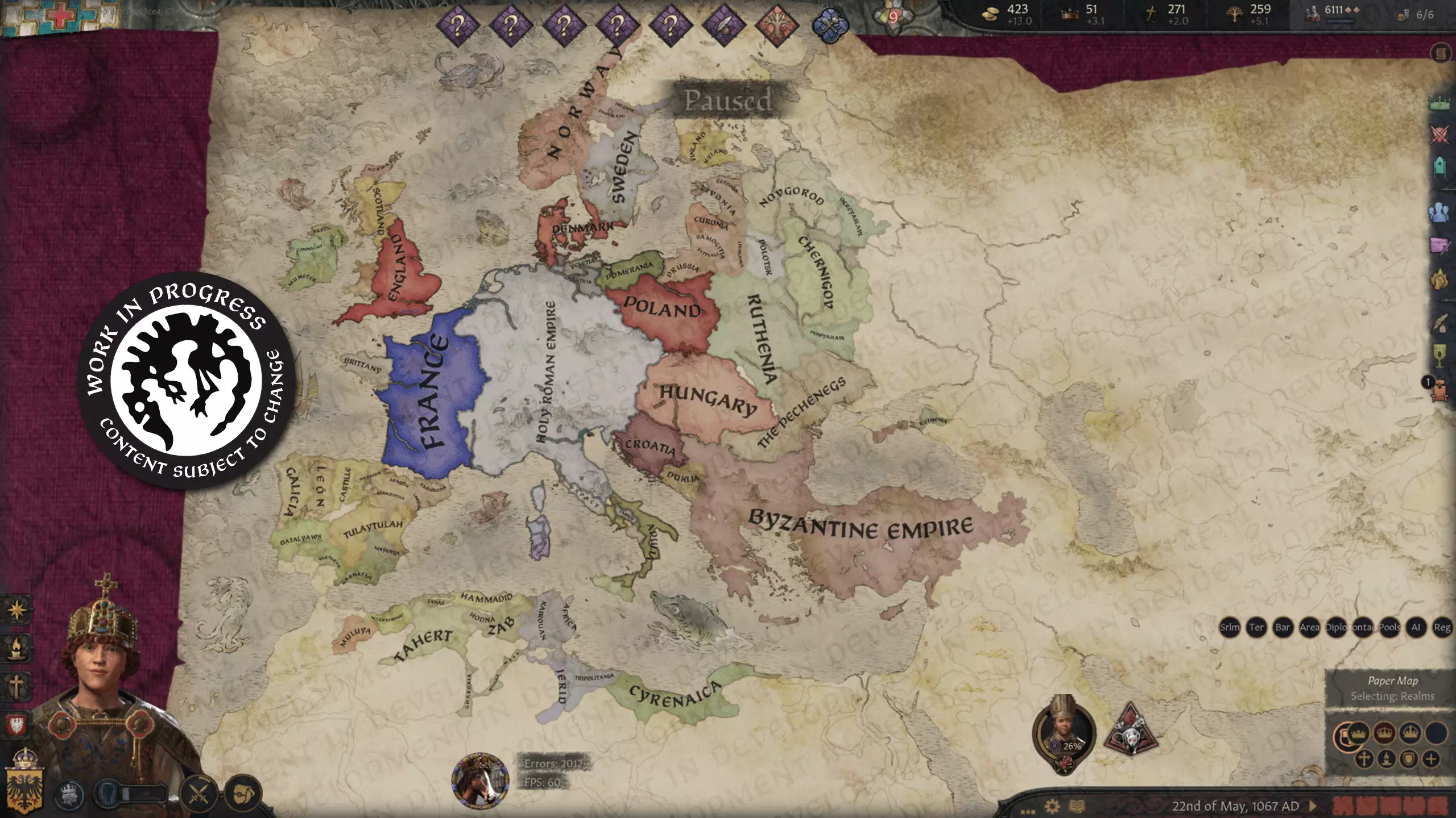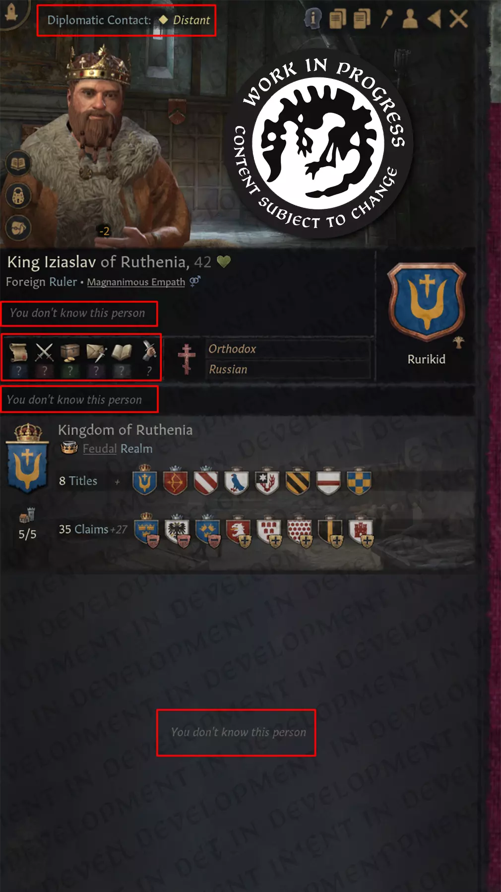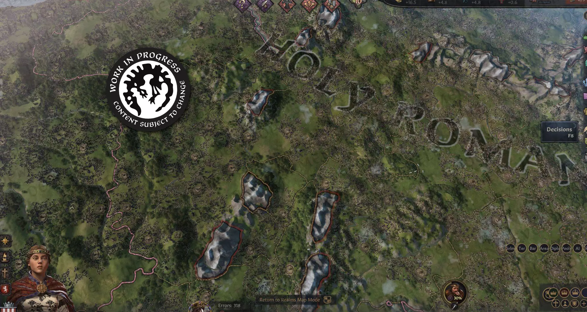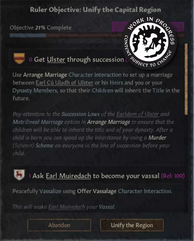 这个果酱项目的部分灵感来源于那个模组……但有所不同。obfusCKate 模组试图真正隐藏人物,并为他们设置不同的效果和更多可见度等级。而 Terra Obscura 则更侧重于外交接触和可视化。由我们最资深的程序员之一 joror 领导,他的团队着手打造全新的《十字军之王》体验:在这个体验中,不仅角色,连地图本身都笼罩在神秘之中。