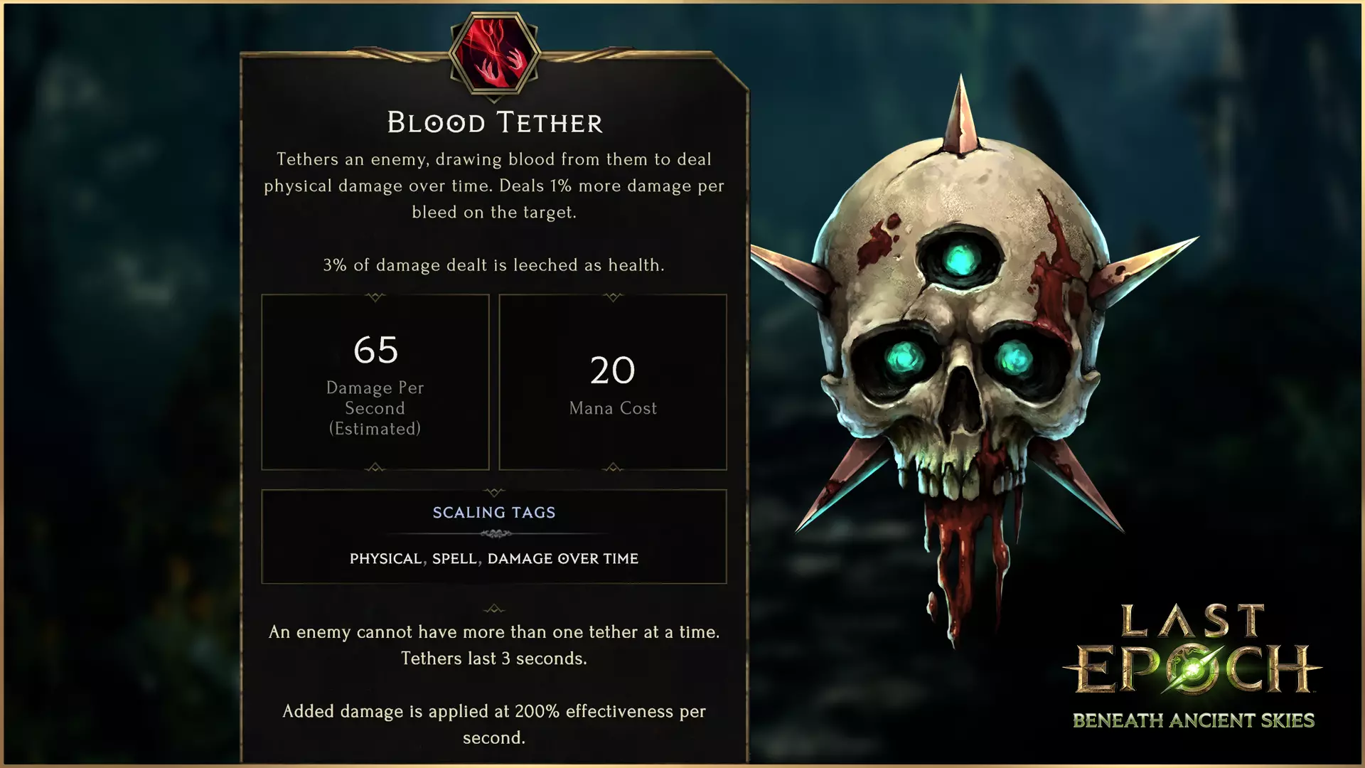 将近战伤害的额外伤害加成赋予混沌箭,再加上几条提及收获的词条,这件装备与剥皮技能的契合度可能并非一目了然。凭借强大的混合伤害支持、对法力值的提升以及法力回复能力,这把武器为致命阴谋和剥皮技能的法术触发提供了近乎完美的协同优势。 关于这件装备的背景,我们将由Heavy本人来阐述他设计这件装备时的想法和意图: 当我开始构思这件暗金装备时,心中有两个主要目标:一是实现近战与施法者的混合流派玩法,二是为某个技能添加冷却时间,以获得更强的进攻性和实用性。我游玩时间最长的游戏《漫威英雄》在技能冷却方面设计得十分出色。尽管《最后纪元》在很大程度上尽量避免采用这种设计,但我还是希望能体验到那种用一个按键就能清掉一整群怪物的快感。 此外,我一直觉得魔力不应该仅仅是一种用完就补充的资源,如果它能真正让角色受益,拥有越多魔力效果越好就好了。因此,我尝试将这一想法与“剥皮”技能带来的新可能性相结合,创造出一种可能的新流派:魔力堆叠巫妖。 这与“收集被你杀死的敌人的灵魂”这一主题相辅相成,也确实凸显了这把武器背后的险恶历史。 技能改动 在第三季中,侍僧职业将迎来大量改动,涵盖基础侍僧、死灵法师以及巫妖专精。这包括对收获、死亡印记、恐惧阴影等技能的改动。今天我们将展示基础侍僧职业、死灵法师和巫妖各一个技能。侍僧职业将在8天后迎来更多改动和更新,本次展示仅为预览。 侍僧 - 撕裂血液 撕裂血液的基础功能迎来重大改动:现在它会攻击你前方直线上的所有敌人,而非瞄准特定敌人。被击中的每个敌人仍会生成血球并返回为你治疗。