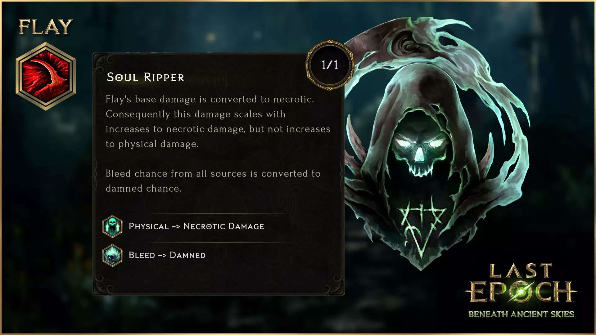 灵魂撕裂者 想要体验融肉之痛吗?灵魂撕裂者将剥皮的基础伤害转化为暗影伤害,并且所有来源的流血几率都将转化为诅咒几率。