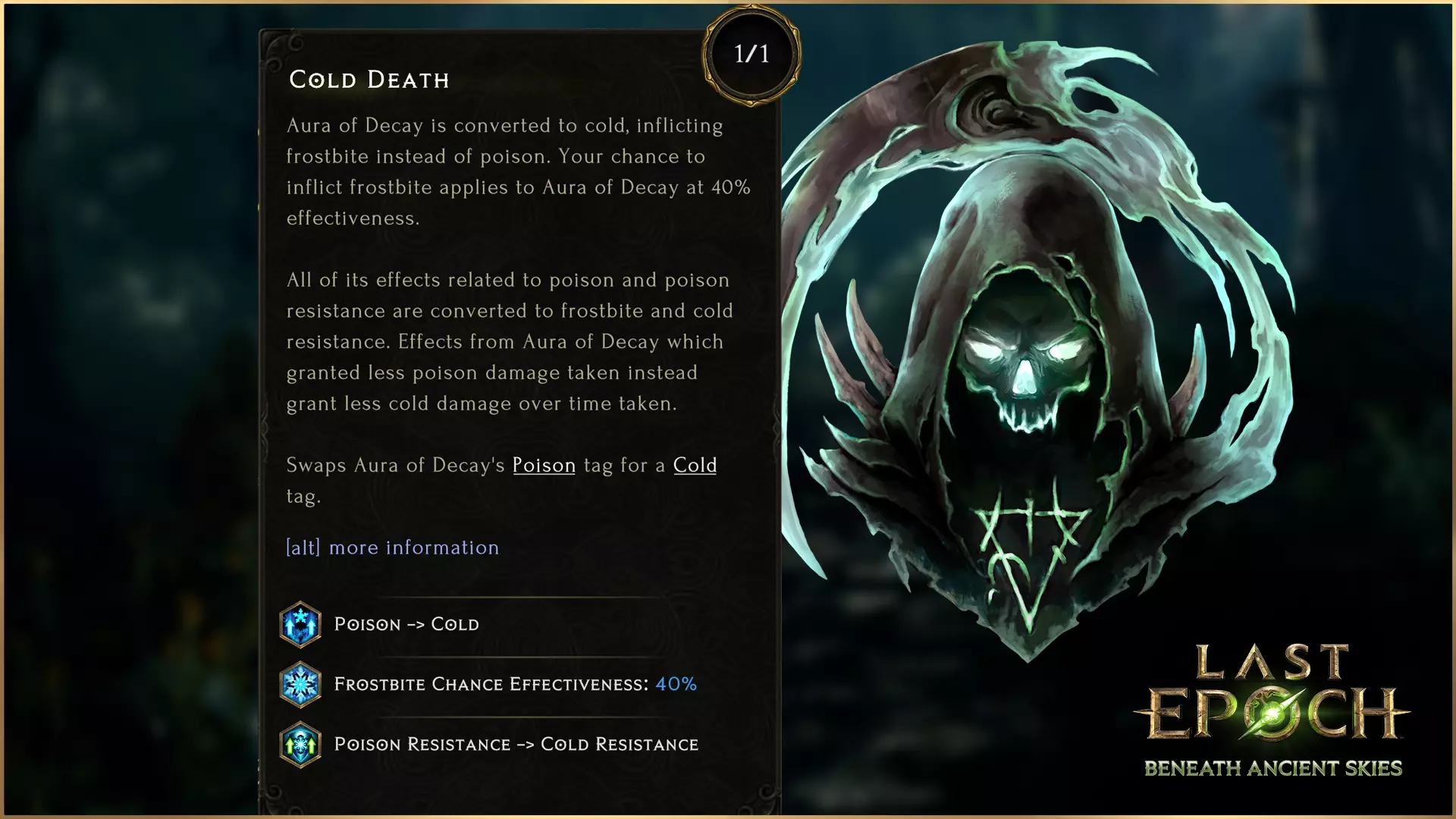 伊卡里安毒素已替换为冰冷死亡。此新节点将腐朽光环转化为冰冷属性,造成冻伤而非中毒效果。腐朽光环所有与中毒及中毒抗性相关的效果均转化为冻伤和冰冷抗性。 腐烂炸弹