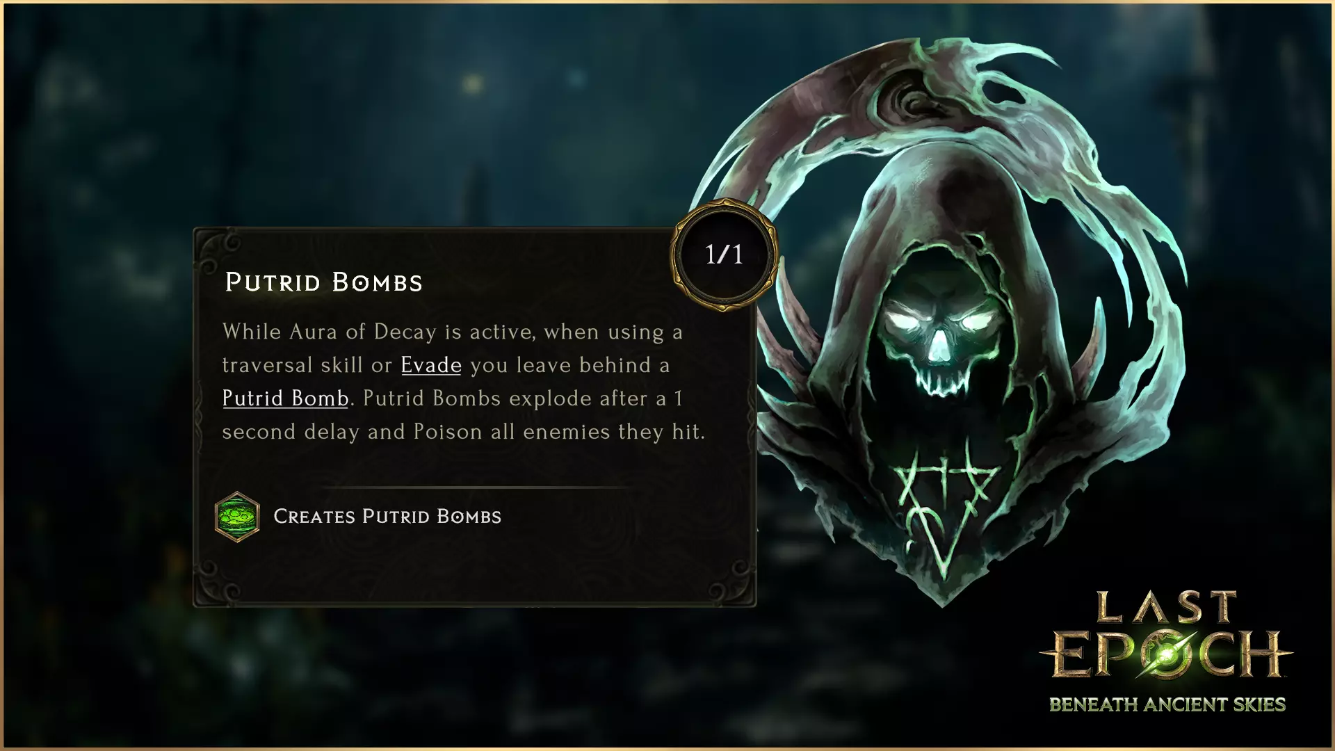 腐烂炸弹已重做。此前,腐烂炸弹会在腐朽光环激活期间每2秒留下一枚腐烂炸弹。重做后,当腐朽光环激活时,你使用位移技能或闪避时会留下一枚腐烂炸弹。腐烂炸弹的爆炸延迟现在为1秒(原为2秒),且现在拥有你命中时中毒几率250%的效果(原为25%中毒效果提升和100%持续时间提升)。 溃烂