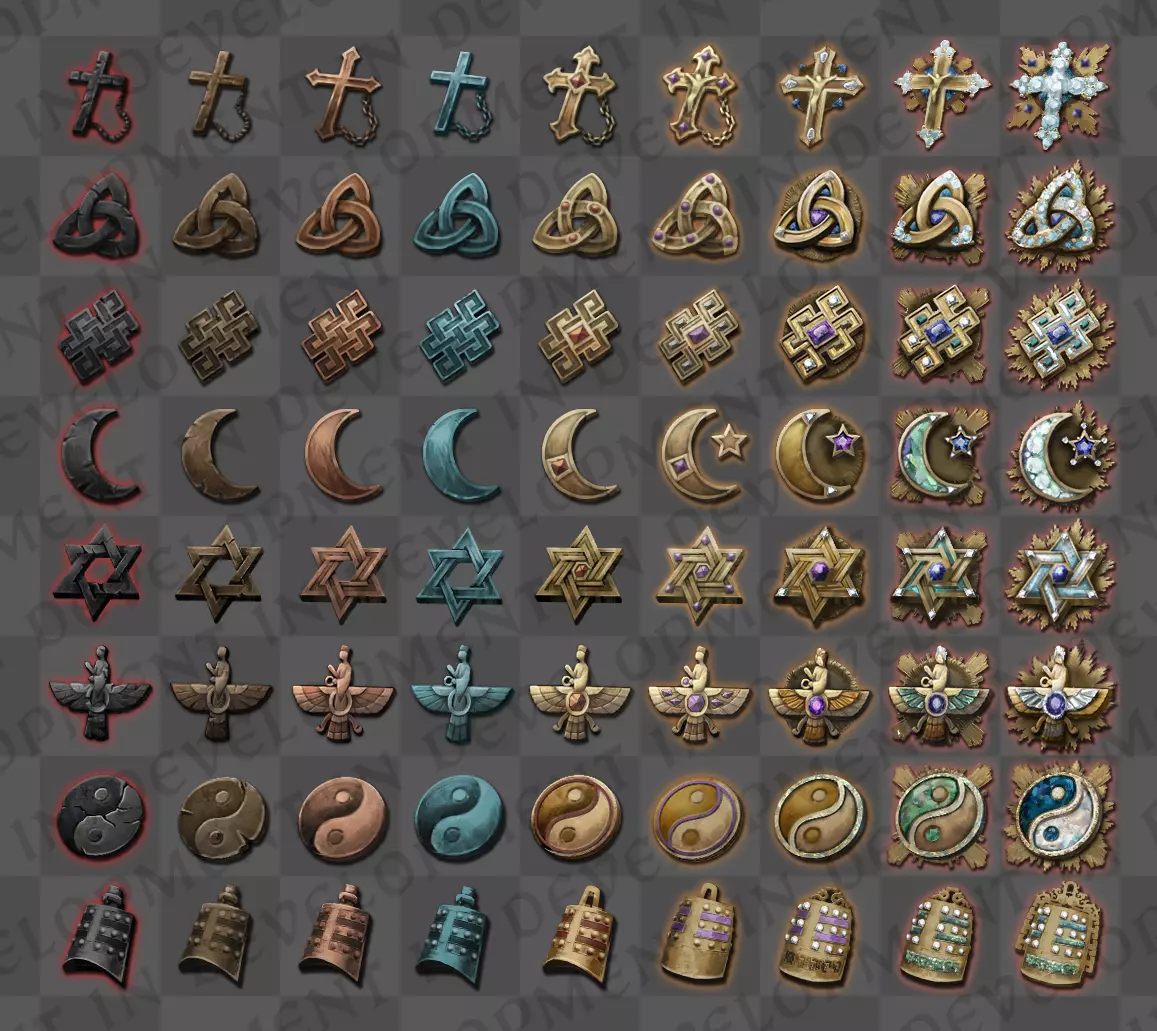 【网格中有9个虔诚等级,从罪人到神级排列】 没错,我们确实需要为这个特定功能展示一些真正华丽的艺术图标渲染! 寺庙的问题 你可能会问,一位强大的神王德瓦拉贾在这个世界上还可能需要什么呢?那么,寺庙怎么样? 在《天下》中,我们将引入一种额外的领地类型:寺庙堡垒。这将是曼陀罗统治者的主要领地,并且对于大多数其他有地政府来说,它也可以作为首都(与城堡领地一起),以确保当该地区被非曼陀罗统治者征服时,它仍然有效。你的首都的神庙堡垒是首都神庙建筑群的主要地点;这是一座拥有额外防御设施且高度重视虔诚等级的神庙,也是任何有自尊的神王的根基。这些宏伟建筑通过新的“伟大工程”功能建造,该功能是你与臣民之间的协作项目。未来的开发日志将提供更多相关信息! 最终建成的宏伟建筑,即首都神庙建筑群,将通过以下方式支持你的王国:扩大你的曼陀罗王国内的领土上限和附庸上限,以及提升你作为神王的光辉(你吸引朝贡国和附庸的能力)。