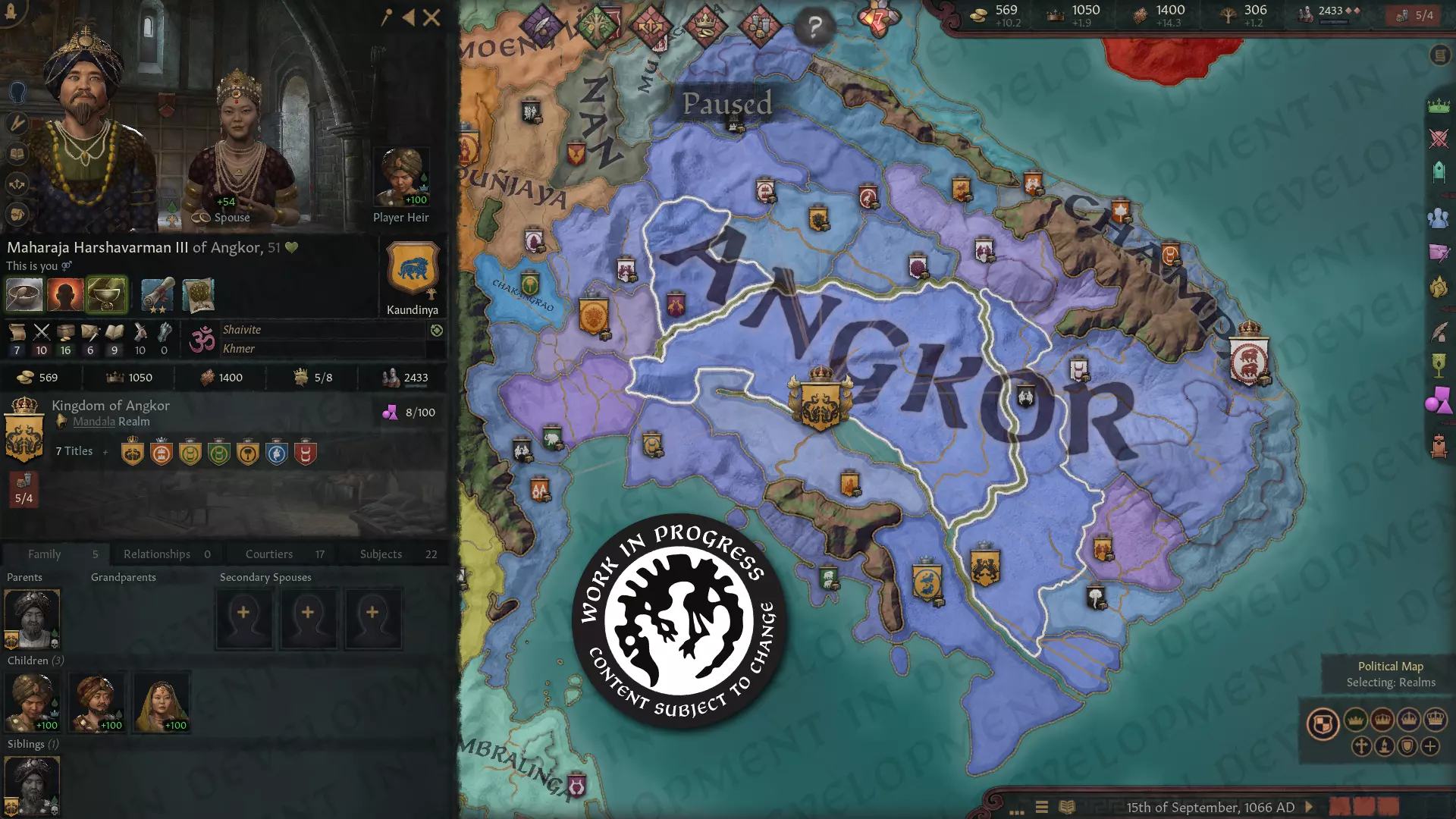 【婆罗浮屠截图】 在印度的达摩信仰(佛教和印度教)中,统治者找到了统一更大领域所需的权威和统一意识形态。他们仍然以伟大的领袖为中心,但与婆罗门祭司结盟,渴望成为活着的神:神王。 神王概念建立在印度理想统治者的理念之上,即统治者需得到众神的青睐。在东南亚,这一理念演变为受民众爱戴的国王实际上是神的化身。宗教仪式与王权在巨大的 temple cities 中融为一体,在这里,臣民和远方的附庸国共同出资建造伟大的公共工程。纪念碑既可以是宗教象征,也可以是王权的体现,比如巨大的达摩诸神雕像会刻上统治者的面容,仿佛统治者亲临臣民之中。首都的寺庙群成为曼陀罗的中心,周围环绕着附属村庄、城市和朝贡国王。 尽管如此,即便是神王统治的王国也有其短暂性。较小的国家可能会向神王进贡,但当神王去世或出现更具影响力的统治者时,它们可能会重新考虑自己的效忠对象;在曼陀罗王国的边缘地带,忠诚度变化很快。 如前所述,东南亚是一个多样化的地区。除了我在此描述的这类国家外,还有越南和南诏国(后来的大理),它们的运作方式截然不同。@PDX_Chop 之前在开发日志中已经介绍过这些内容,所以今天我们不再赘述,但在引言中不提它们是不完整的。 现在我将交给 @Distantaziq,由他来讨论我们如何努力描绘该地区。他们将详细介绍我们为在《天下共主》中表现曼陀罗领域以及周边非佛法部落领域而开发的机制。 曼陀罗——转轮圣王领域 大家好!我是 Distantaziq,《天下共主》的设计师之一! 今天,我们将探讨东南亚的神王与神后——曼陀罗!从历史角度来看,这些政权高度依赖宗教与信仰,围绕着那位宣称自己是神圣存在的曼陀罗统治者运转。