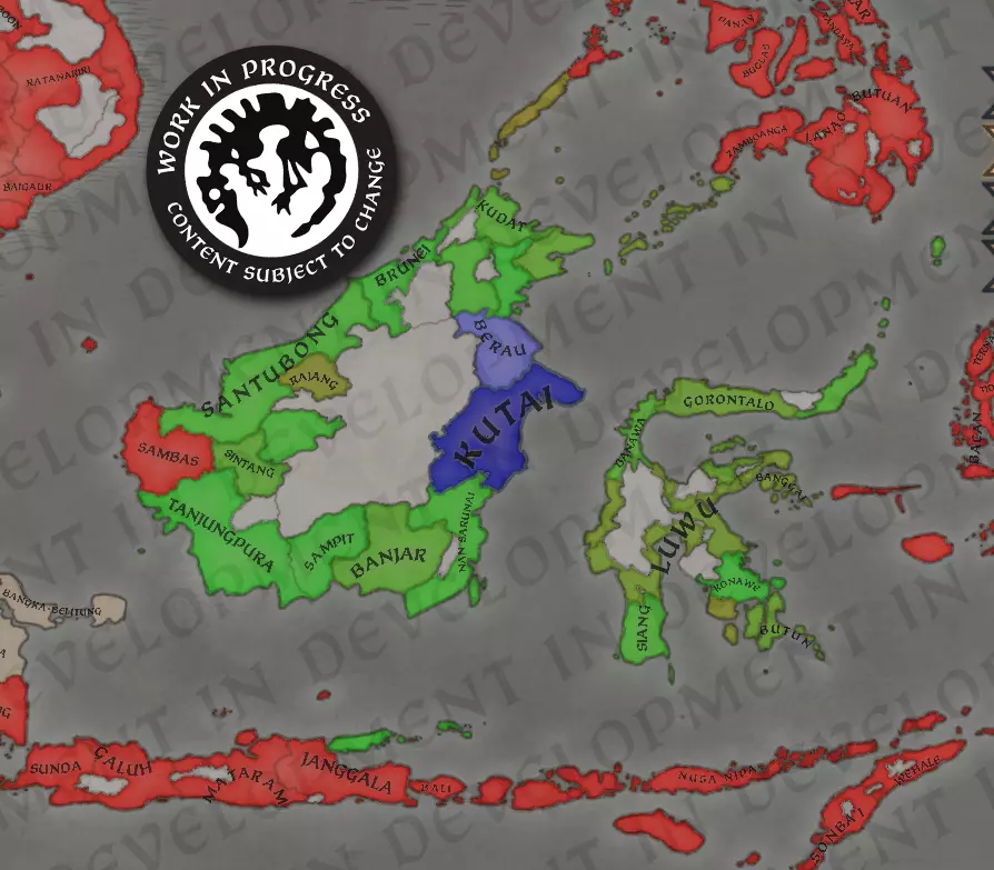最后但同样重要的是,这些是我们为该地区设定的法理帝国!努山塔拉看起来可能很大,但就伯爵领数量而言,实际上并没有表面上那么庞大。并非这些岛屿的所有地区都有已建立的国家(即伯爵领),像婆罗洲或巴布亚等地的内陆地区往往难以通行。 以上就是本次的全部内容!这篇开发日志也是我们暑假前的最后一篇,但开发日志将于八月初恢复更新。在此期间,我们当然仍会关注大家迄今为止对我们日志(包括本篇)所提供的反馈。