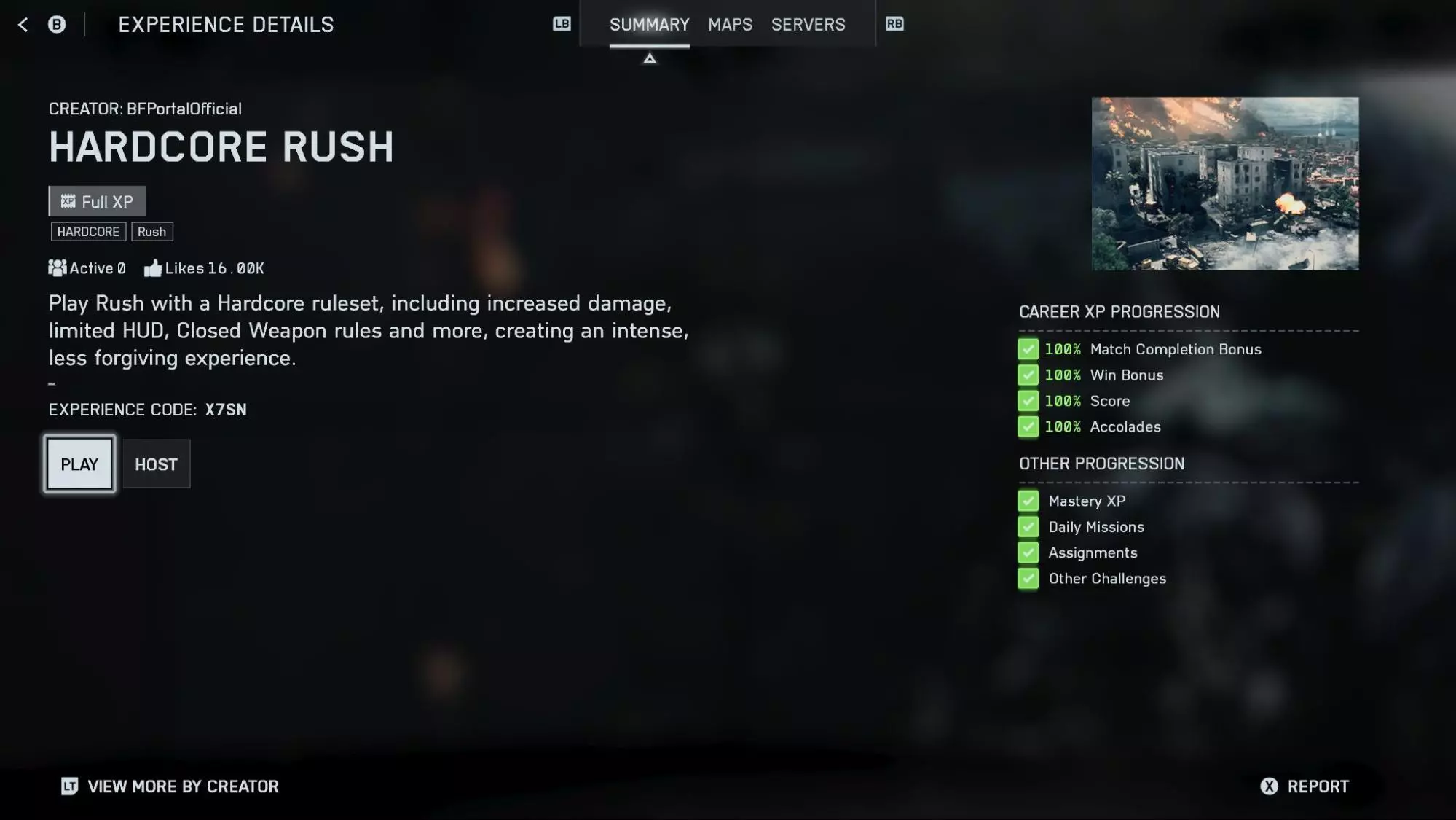 如何加入BFPortalOfficial体验/服务器: 1. 进入主菜单中的社区选项卡。 2. 选择一个体验,例如硬核征服。 3. 点击左下角的按创建者查看更多。 4. 在这里,你可以看到所有BFPortalOfficial模式,并可以选择你和朋友想要玩的模式,比如硬核征服。 5. 浏览或创建服务器,并与朋友分享服务器名称和主机信息,以便他们能轻松加入你。 第一季即将到来 我们根据你的反馈为第一季计划了其他更新和改动。我们正在积极敲定这些细节并与你分享,感谢你一直以来的反馈。【战地】团队 本公告可能会根据社区反馈以及我们对游戏在线服务和内容的持续开发与改进而发生变化。我们将始终致力于让社区尽可能了解相关信息。