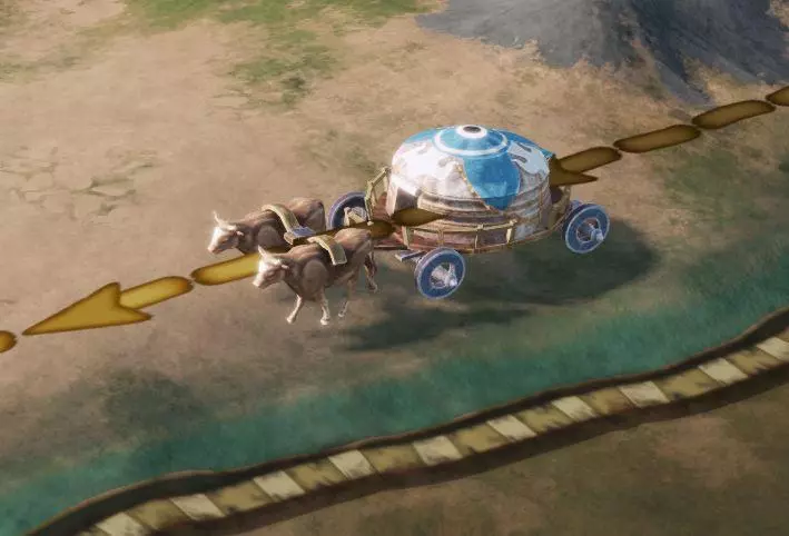 【疾驰】 我们为游牧营地的迁移设计了独特的模型。你的族人将通过由牛群牵引的轮式蒙古包来呈现。