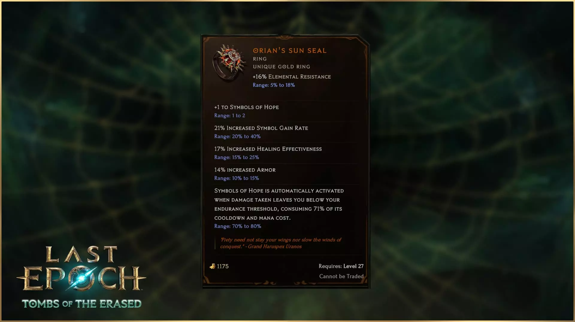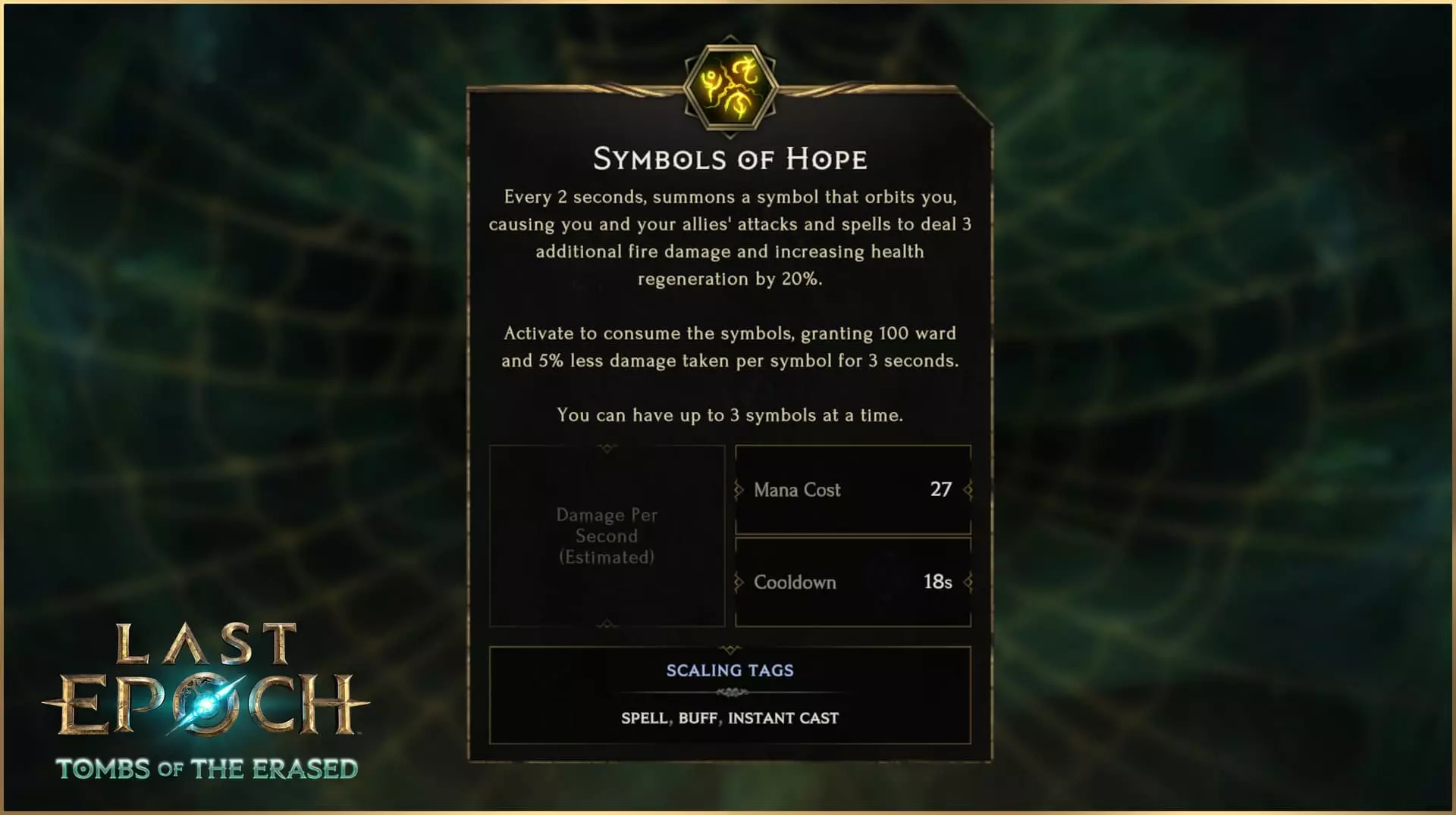 不过等等,这个技能不是叫“希望印记”吗?从第二赛季开始就不是了!未来我们将添加印记系统,这让该技能的名称产生了一些混淆。随着机制的调整,我们认为这是通过小幅更名来解决混淆的最佳时机。而机制上的改动可不小。 每2秒召唤一个符号围绕你旋转,使你和盟友的攻击及法术额外造成3点火焰伤害,并使生命回复提高20%。激活技能可消耗这些符号,每个符号为你提供100点护盾和5%减伤,持续3秒。你最多可同时拥有3个符号。 与不稳定反转类似,希望印记常常成为一个“令人困扰”的因素。作为一项需要定期重新激活以维持被动加成的增益技能,它最终要么成为对游戏体验的干扰且缺乏有趣效果,要么就只是自动施放。【希望印记】的改动不再是使用技能时获得印记,而是改为玩家随时间被动获得印记,激活技能则会消耗印记以获得显著的临时增益。 虽然不像【不稳定逆转】那样是完全重做的技能,但你仍会在新的【希望印记】技能树中发现许多差异,包括改动后的【神圣闪光】分支、【守护值生成】以及新的被动加成,例如【暴击几率提升】。 【奥rian的太阳圣印】