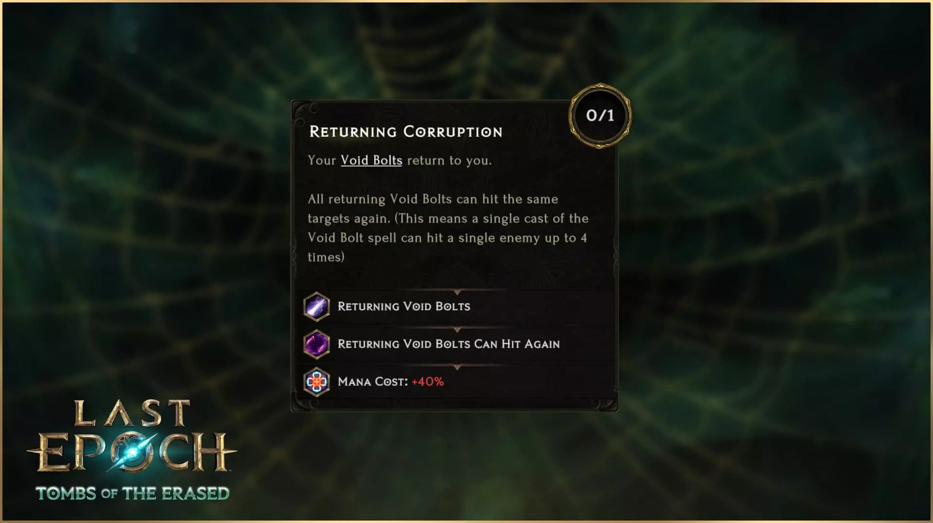 添加【回归腐化】使所有虚空箭返回,并强化其效果。这些节点适用于【不稳定反转】的每次激活,这意味着如果你同时选择【初始虚空箭】和【终结虚空箭】,每个冷却时间内将触发总共六枚投射物。Holding the Line