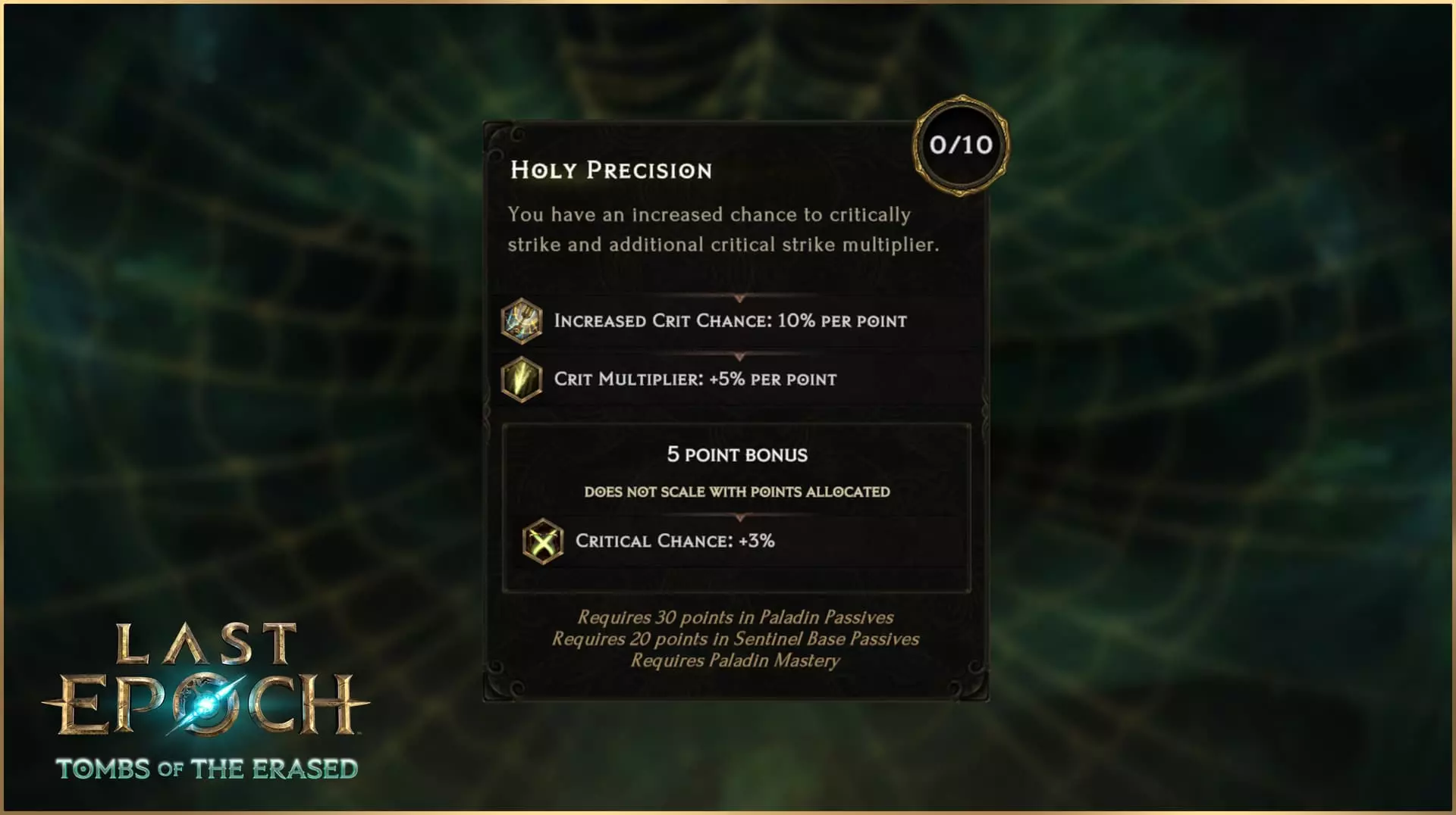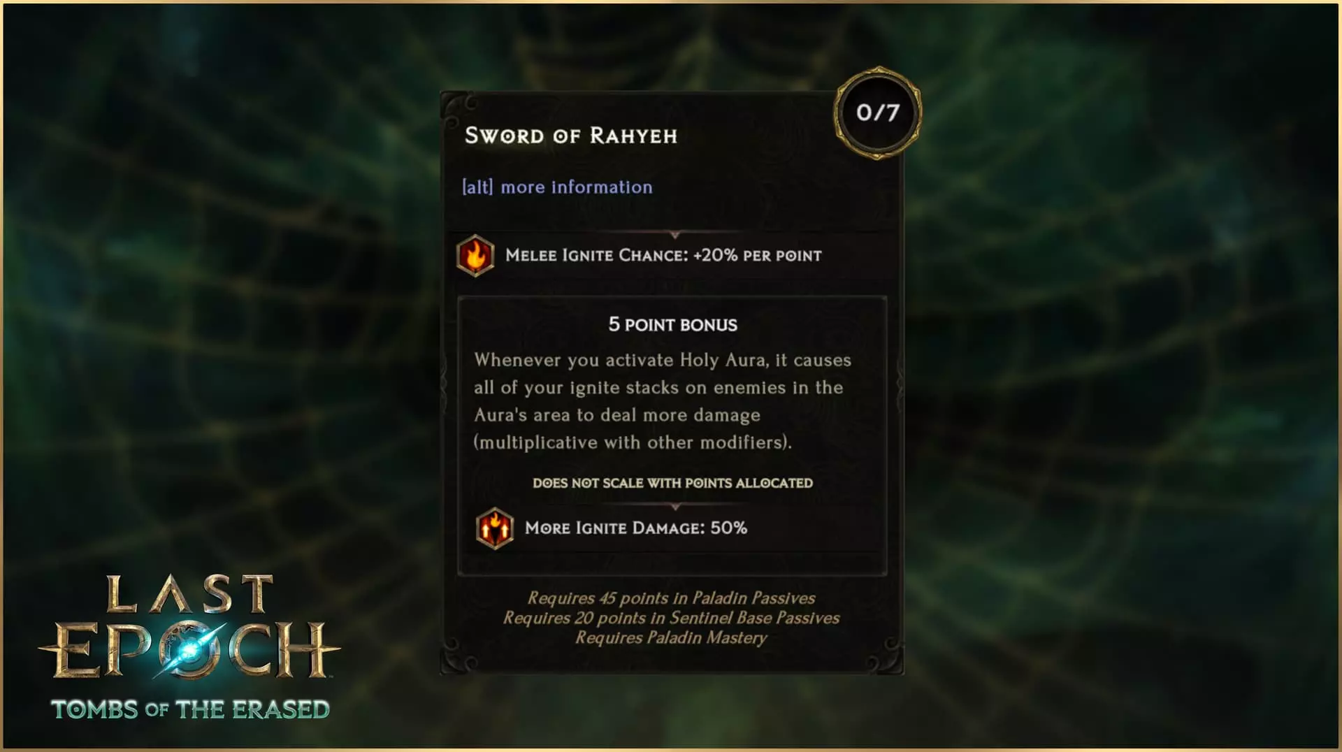 圣骑士被动技能树末端的这个巅峰节点,如今已拥有与其作为圣骑士最终被动节点之一地位相符的强大能力。它不仅每点提供大量近战点燃几率,还设有阈值奖励——当你激活神圣光环时,所有点燃伤害将获得大幅提升。神圣精准
