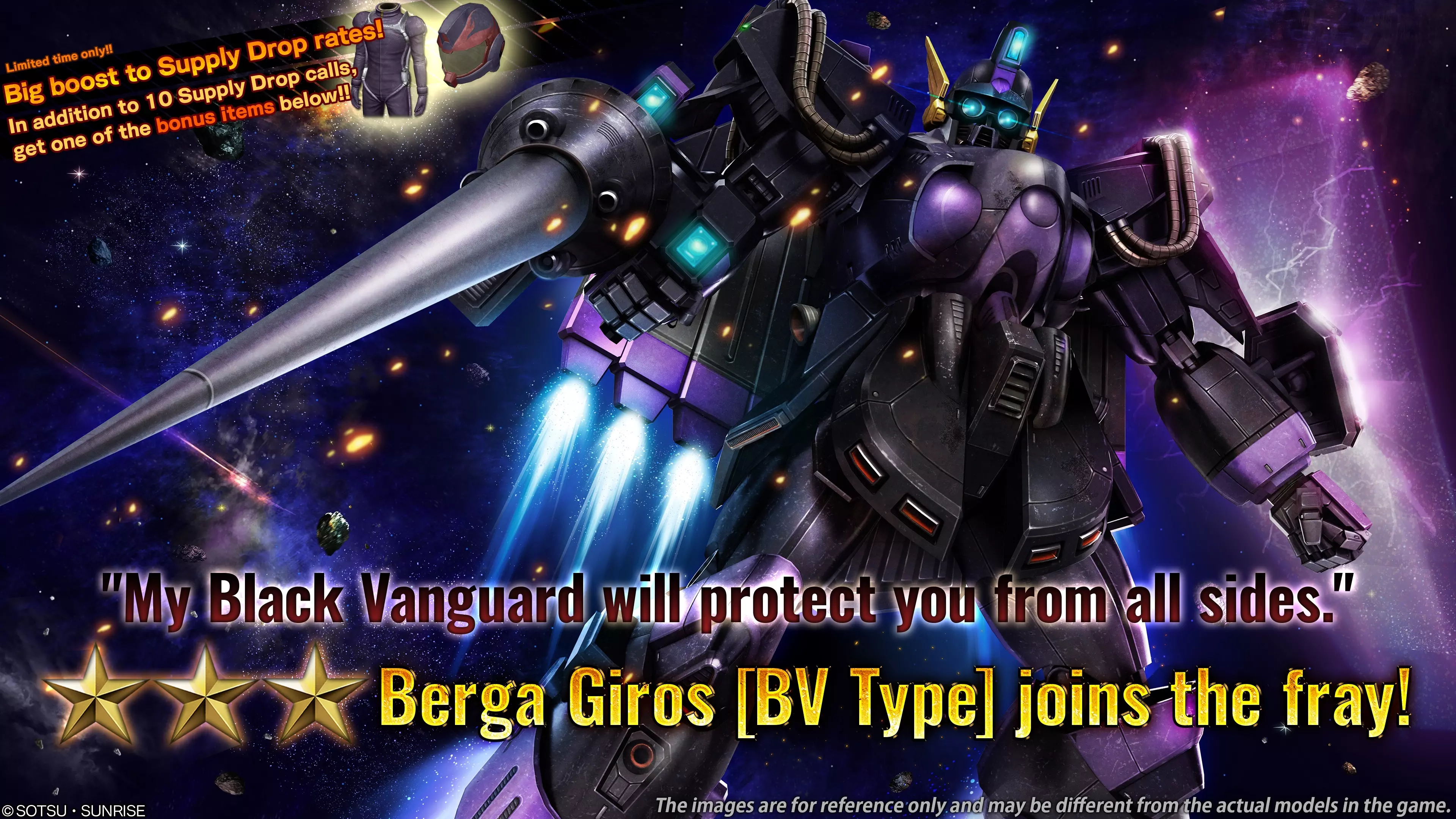 ※本次补给箱将与当前进行中的补给箱抽取到相同的物资。详情请查看【物品列表】。 ※请务必留意活动日程,以免错过任何内容。 ■补给箱阵容“Berga Giros [BV Type]”公告 补给箱阵容已更新。