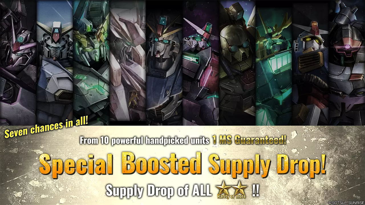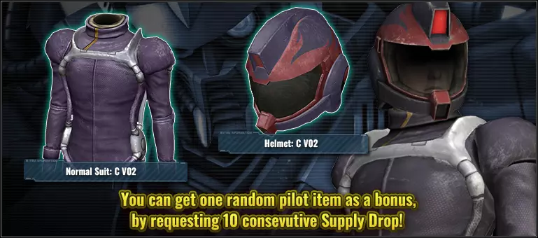 ■活动时间 [太平洋时间] 2025年10月16日 01:00 – 2025年10月22日 21:30 [已计划] [中欧夏令时间] 2025年10月16日 10:00 – 2025年10月23日 06:30 [已计划] ■含额外物品的补给箱 普通10连补给箱 ■额外物品内容(随机获得以下2件物品中的1件) ■服装 普通套装:C V02 ■配饰 头盔:C V02 ※活动期间进行10连补给箱抽取,将额外获得第11个补给箱,并得到1件额外物品。 ※单次补给箱不享受此福利。即使连续进行10次单次补给箱抽取,也不会获得额外物品。■从补给箱中移除材料 部分材料已从补给箱列表中移除。 ※有关更新后的补给箱列表详情,请参考【补给箱列表】。 ■【补给箱掉落率大幅提升活动】通知 部分新增材料的补给箱掉落率将在限定时间内提升。■活动时间 [PDT时区] 2025年10月16日01:00 – 2025年10月22日21:30 [已计划] [CEST时区] 2025年10月16日10:00 – 2025年10月23日06:30 [已计划] ■获取概率大幅提升的精选素材 ・★★★ Berga Giros [BV Type] LV1 – 2(通用单位,地面/太空可用,成本:700– ) ■获取概率大幅提升的补给箱 ・普通补给箱 ※活动结束后,所有补给箱的获取概率将与其他素材相同。 ■回收计数器新增可兑换素材 ⇒ 新增素材相关信息 ■单位 ・新增★★★ Engage Zero [Booster Type] LV1–2