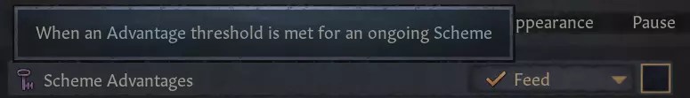 【优化后的互动菜单】 移除了多个分类并将其合并到其他分类中,以减少分类总数。我们为这些分类添加了颜色标识,让你能更轻松地快速找到所需分类。 现在你可以轻松区分计谋是个人、敌对还是政治类型,并在计谋旁显示预测难度,无需深入每个互动即可了解可执行的计谋。