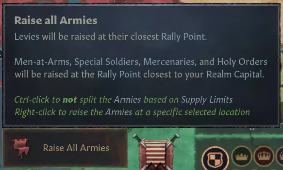 【部队招募界面优化】 现在你可以右键点击特定区域来招募部队,无需先将集结点移动到该位置。这简化了部队招募操作,并避免了因上次战争中移动集结点而导致在帝国错误区域意外招募部队的情况。未来我们有可能会完全移除并替换集结点系统。