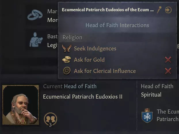 与宫廷职位重做同步,为独立的行政领域统治者新增了一个宫廷职位:【主教】。主教专注于从多方面改善你的首都;相关任务耗资巨大,但效果显著!担任主教对封臣也极具吸引力,因为他们能获得显著的影响力提升……
