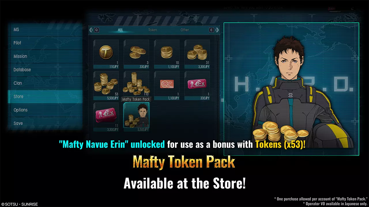 期间,可通过H.A.R.O.菜单中的商店购买包含53个代币和Mafty的代币包!含Mafty的代币包仅售44.99美元! ■购买方式 您可以通过H.A.R.O.菜单中的商店购买该礼包。
